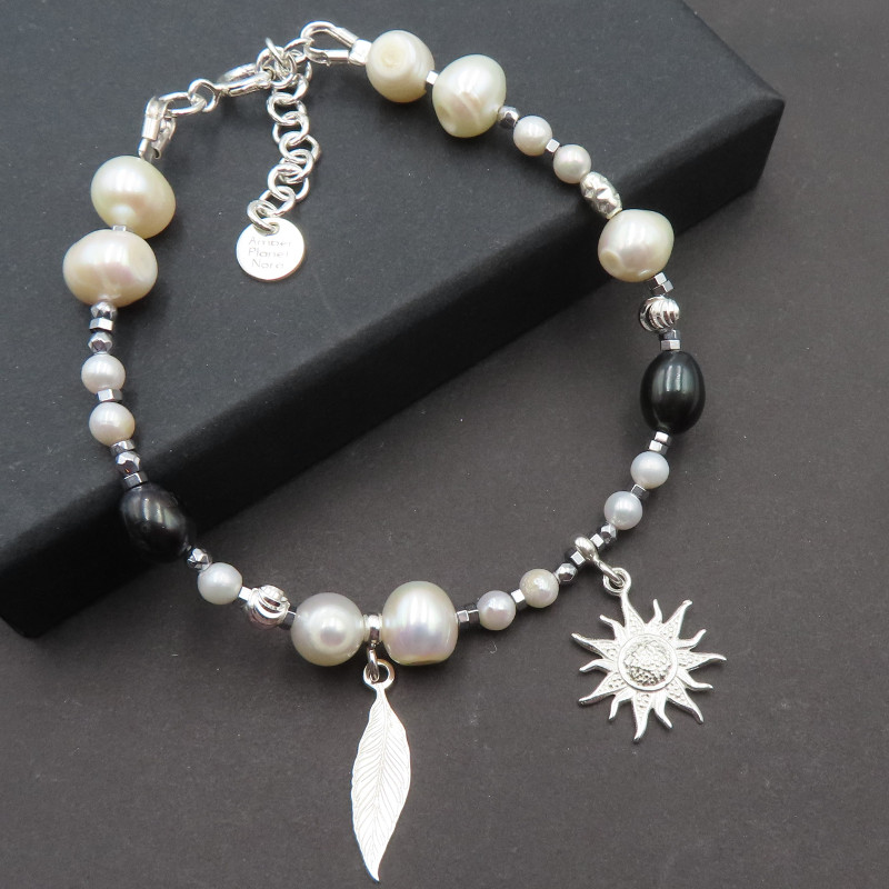 Bransoletka z Perłami Naturalnymi i Hematytem w srebrze.