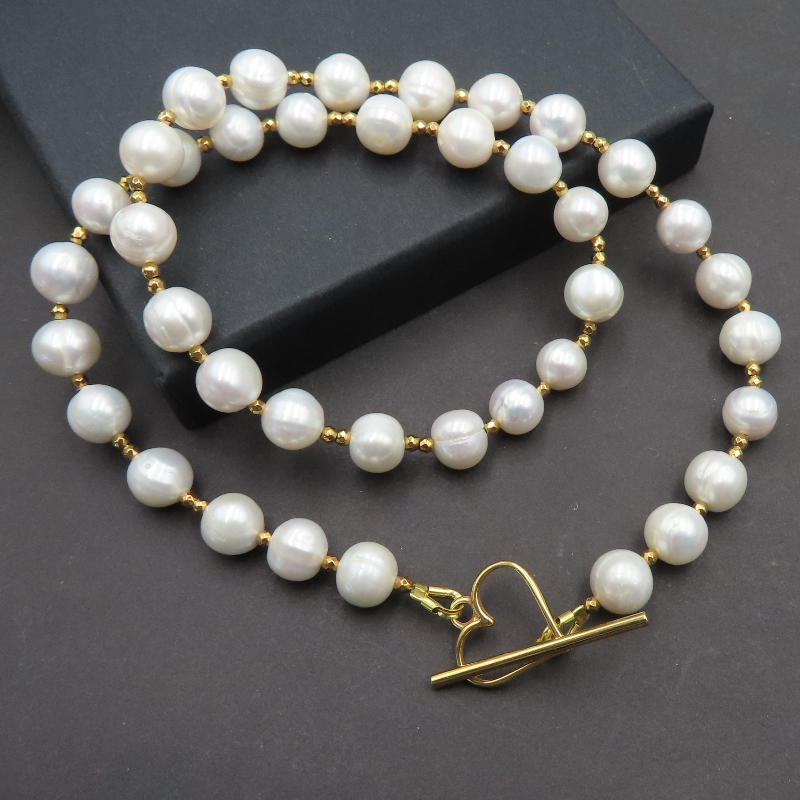 Naszyjnik z Perłami Naturalnymi i Hematytem w srebrze złoconym.