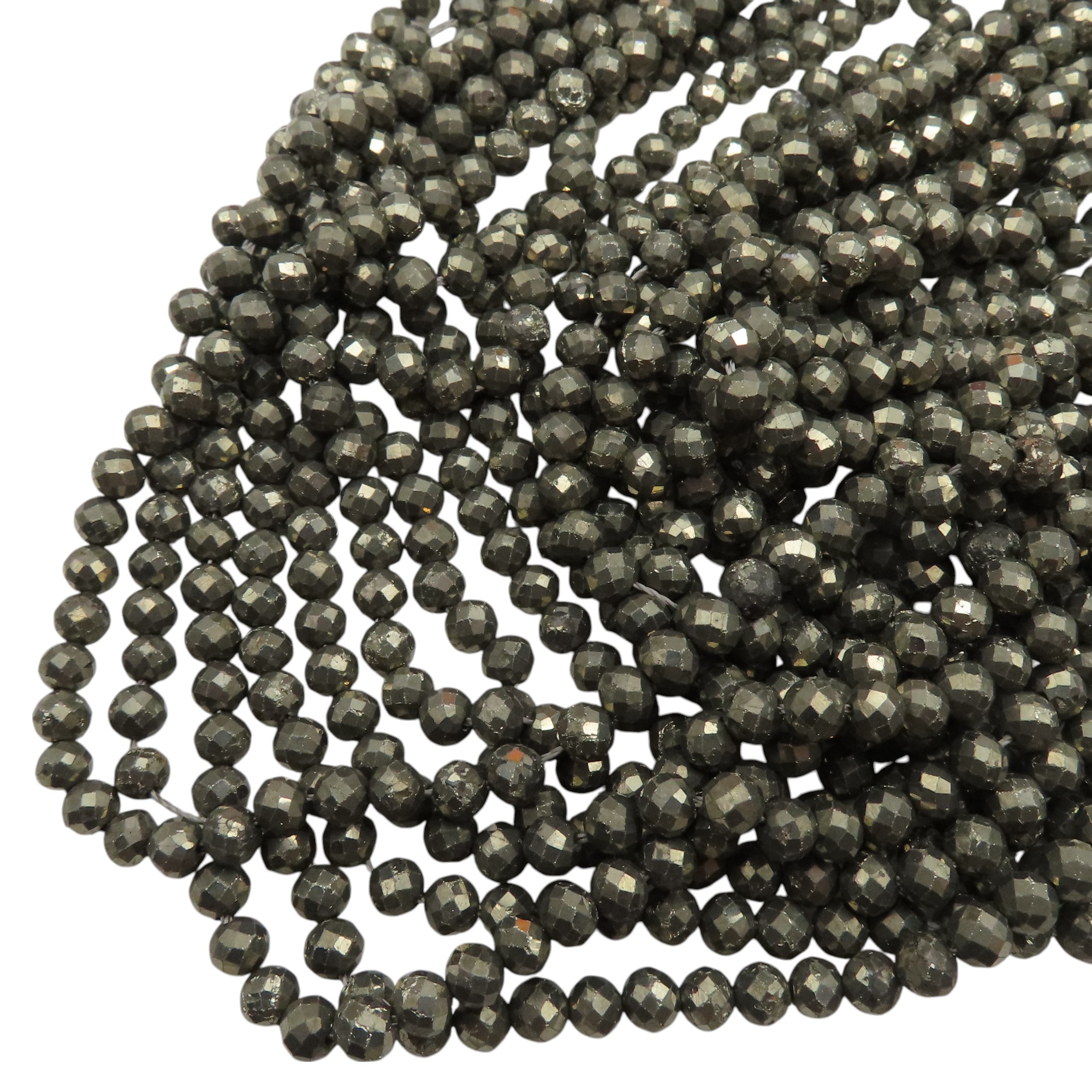 Piryt fasetowany w formie drobnych, regularnych kulek przyciąga uwagę charakterystycznym, metalicznym połyskiem. Fasetowanie podbija grę światła i sprawia, że elementy wyglądają elegancko nawet w prostych projektach.