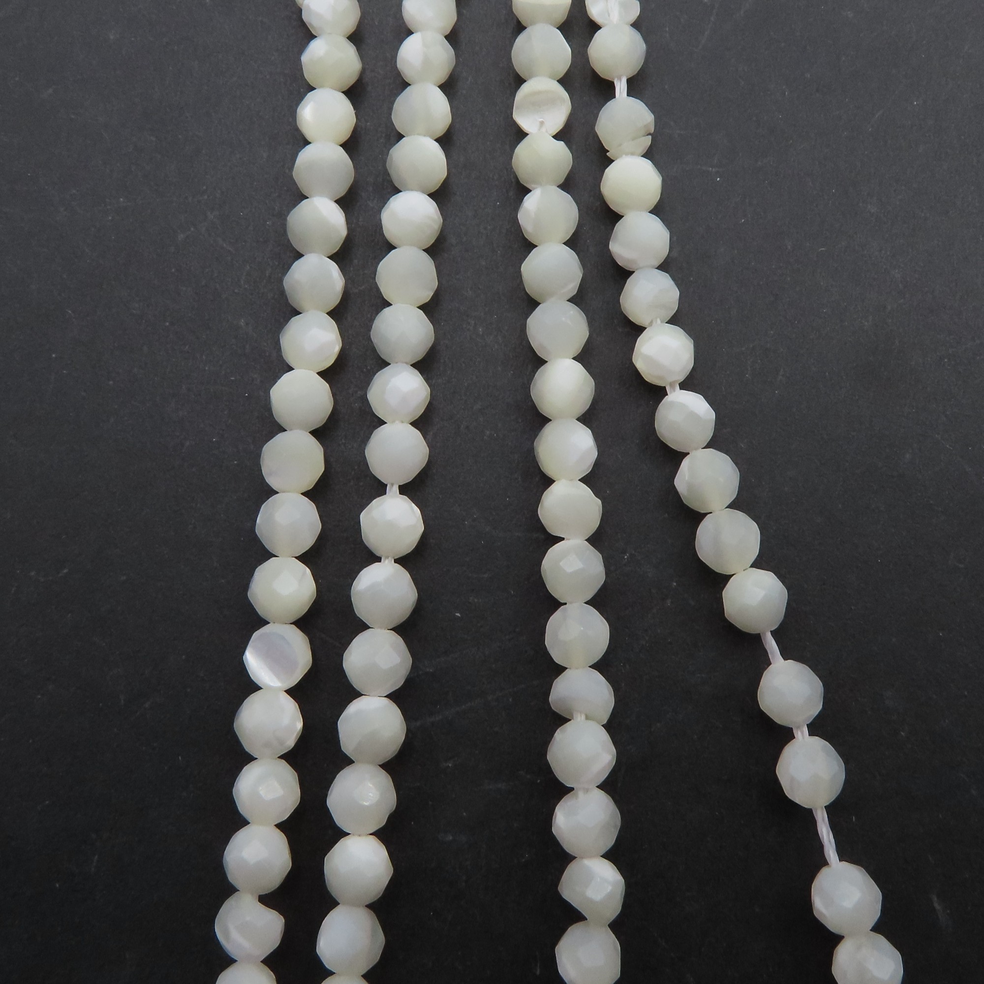 Biała muszla naturalna w formie fasetowanych kulek wyróżnia się jasnym, perłowym charakterem i subtelnym połyskiem. Szlif fasetowany ładnie łapie światło, dzięki czemu koraliki wyglądają elegancko i lekko – dobrze komponują się zarówno z metalami szlachetnymi, jak i bazami w kolorze srebra lub złota.