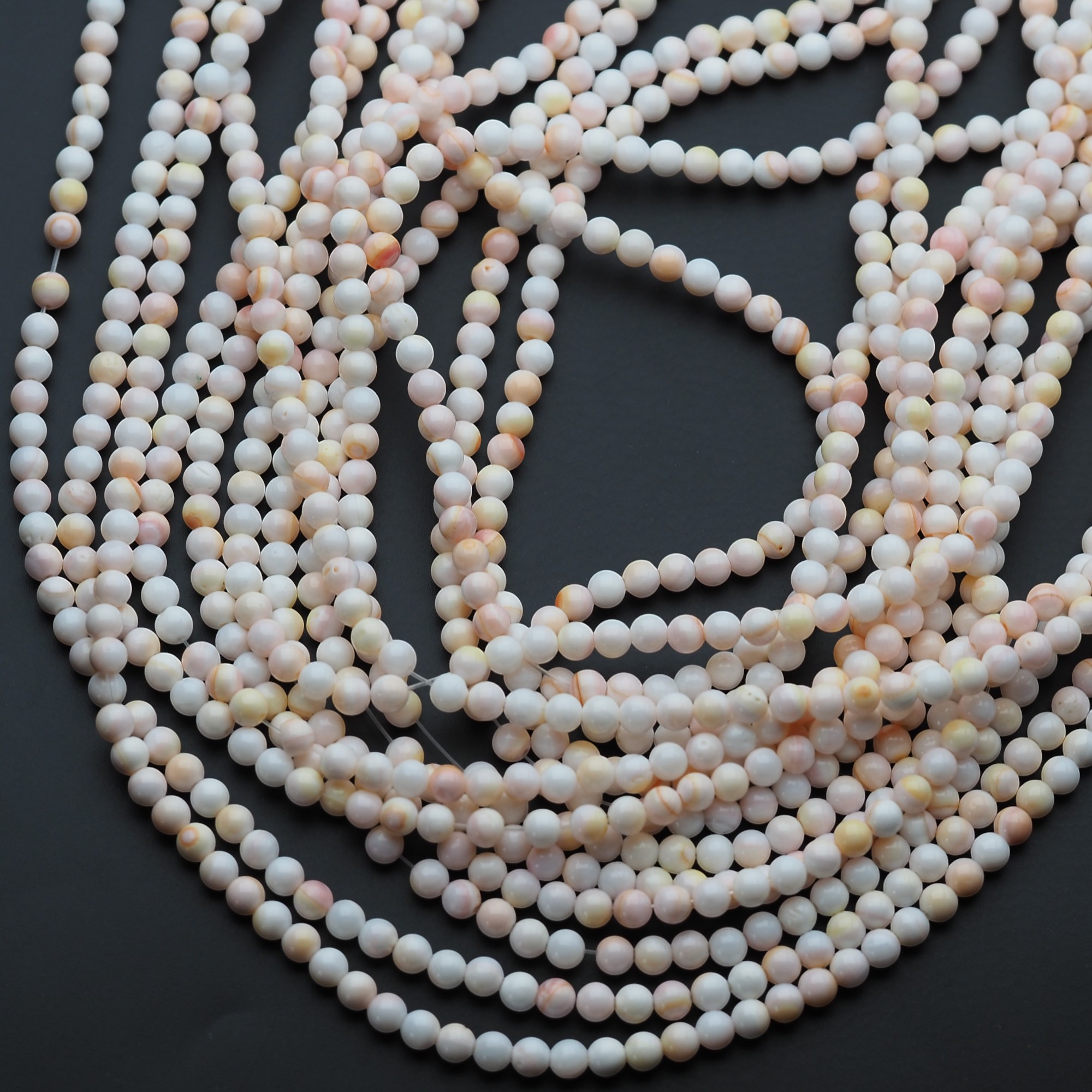 Naturalna muszla różowa w formie polerowanych kulek to delikatny, jasnoróżowy akcent o subtelnym, eleganckim charakterze. Gładkie wykończenie podkreśla naturalny urok materiału i dodaje projektom biżuteryjnym lekkości.