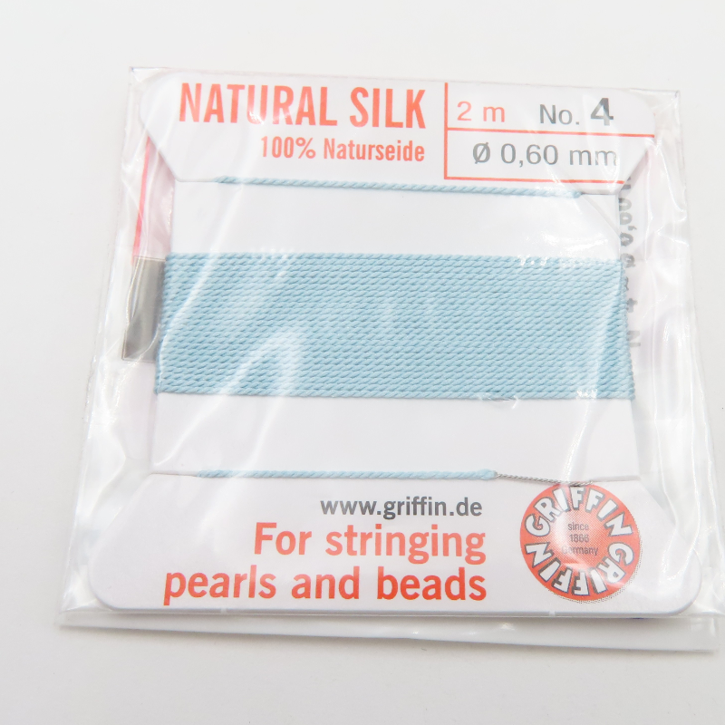Nici jedwabne z wbudowaną igłą w kolorze jasno niebieskim to elegancki, dyskretny dodatek do prac jubilerskich. Delikatny odcień wygląda lekko i czysto, dzięki czemu dobrze komponuje się zarówno z jasnymi kamieniami, jak i bardziej kontrastowymi zestawieniami.