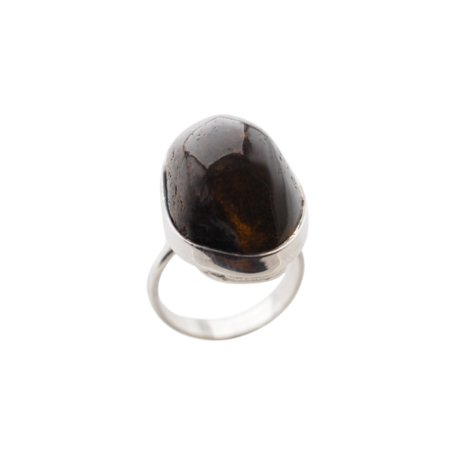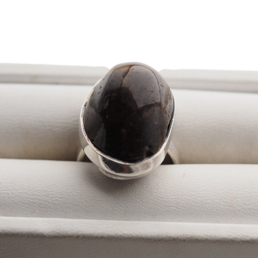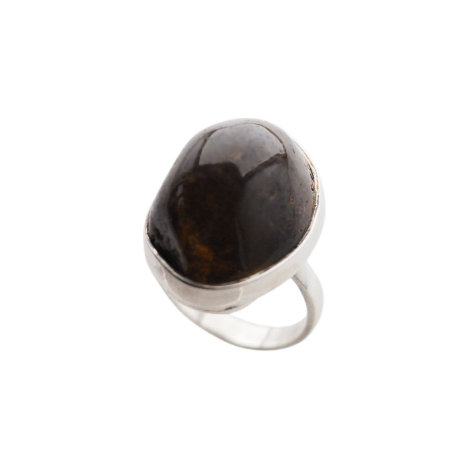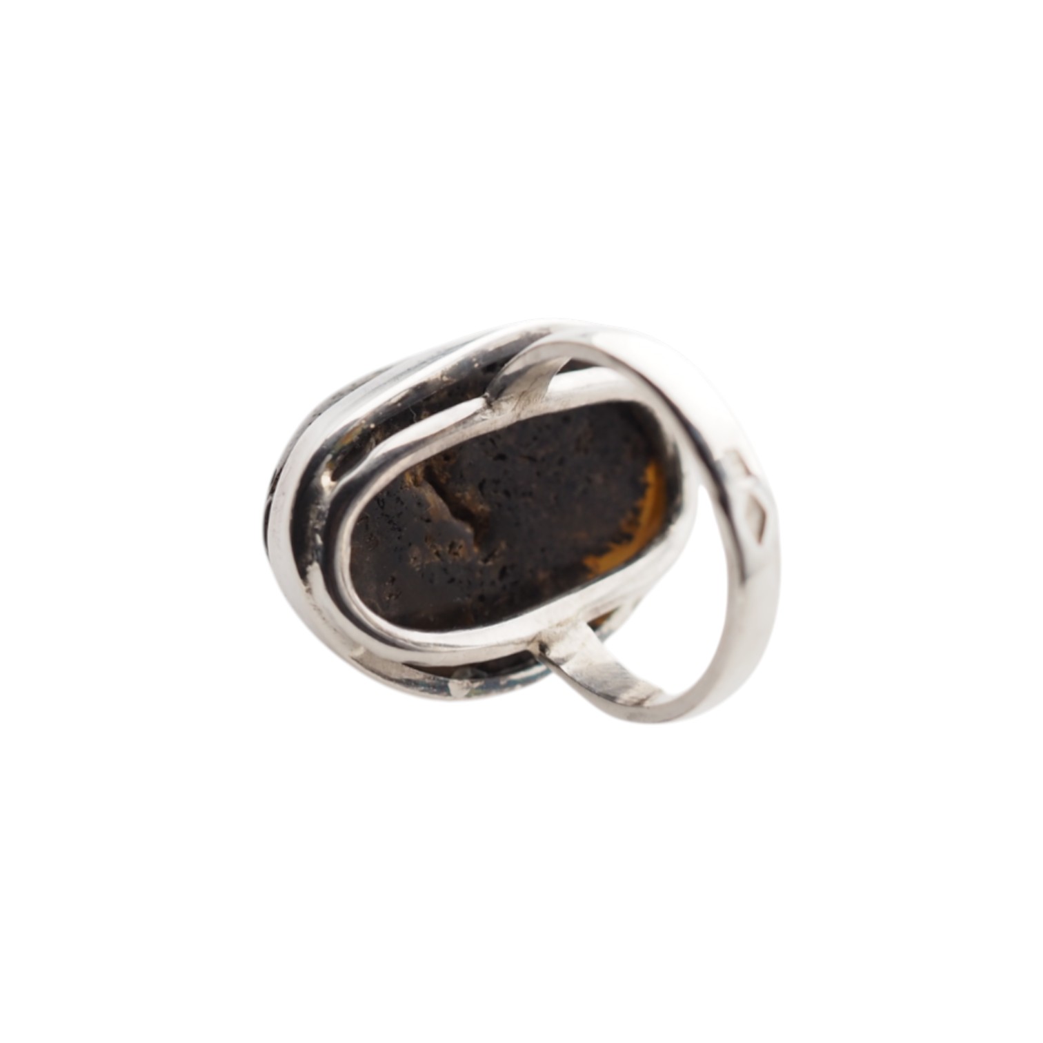 Pierścionek z Ciemnym Bursztynem – Srebro 925, ręcznie robiony, naturalny bursztyn 22x16 mm