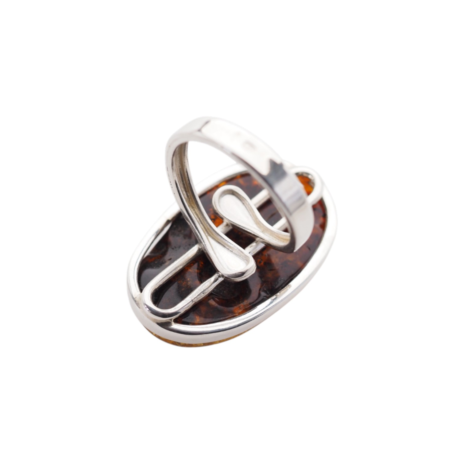 Srebro próby 925 – prosta i zamknięta rama otulająca bursztyn w całości.