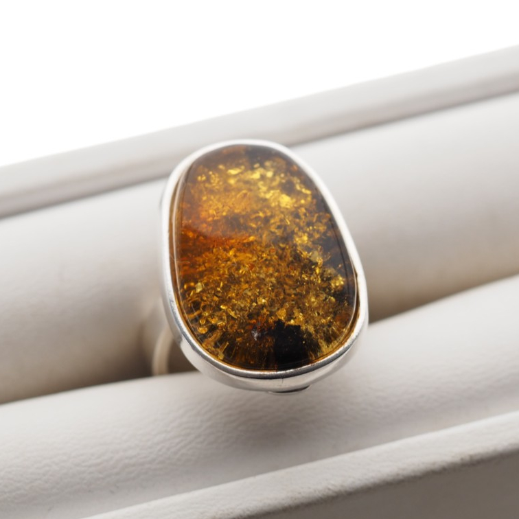 ✔ Połysk: intensywny, podkreślający trójwymiarową głębię bursztynu – zmienia się zależnie od kąta światła.