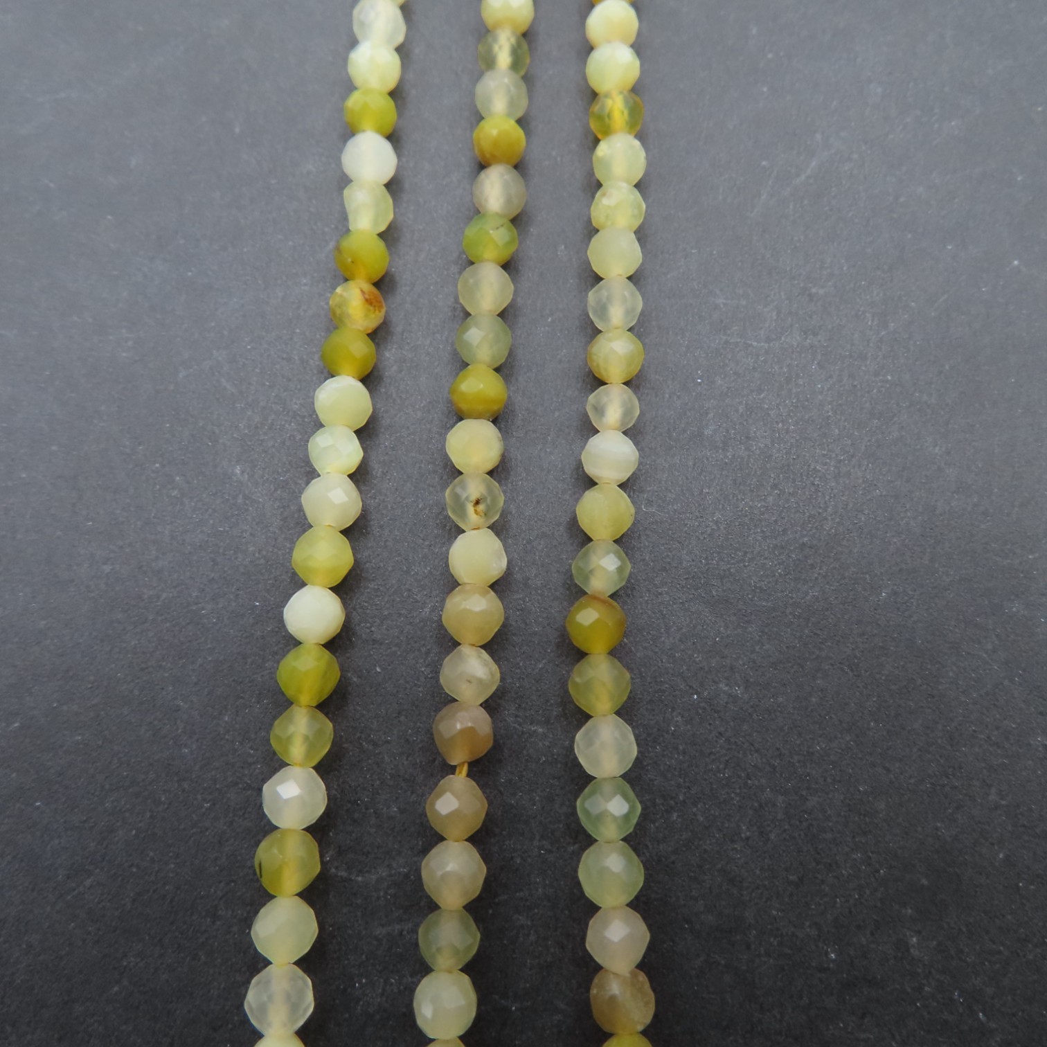 Opal żółty fasetowany w formie drobnych kulek to jasny, świetlisty akcent do projektów biżuteryjnych. Fasetowanie nadaje kamieniom subtelny połysk i podkreśla ich kolor, dzięki czemu sznur prezentuje się lekko, elegancko i „jubilersko”.
