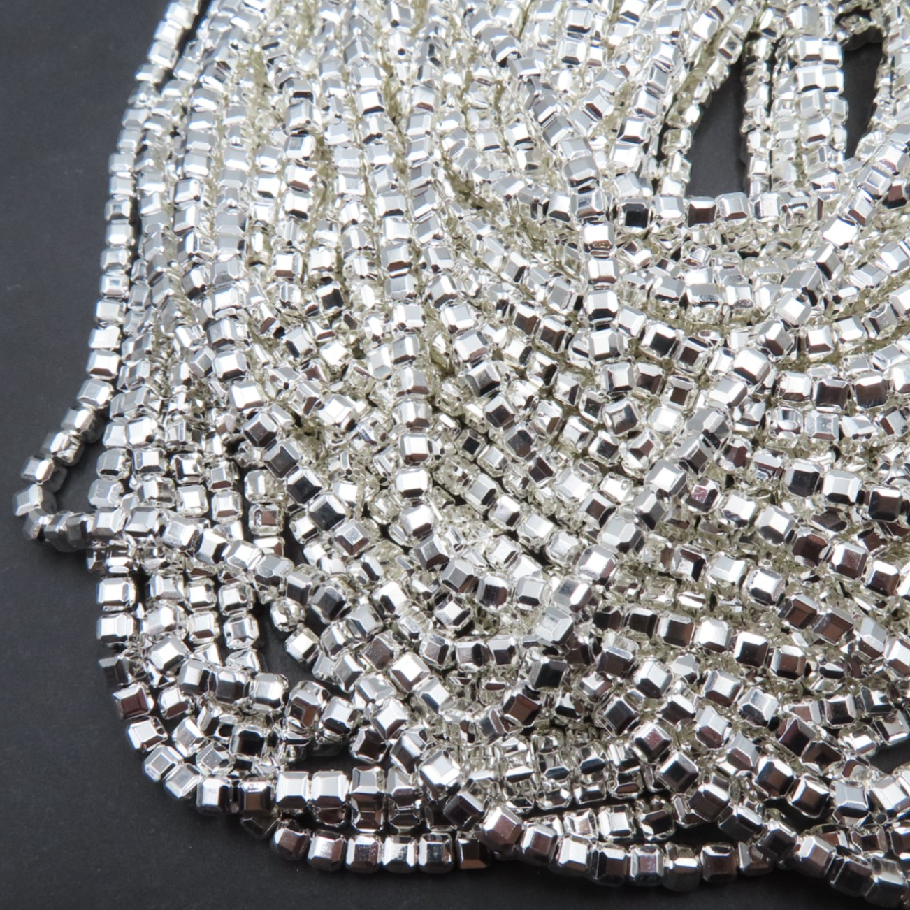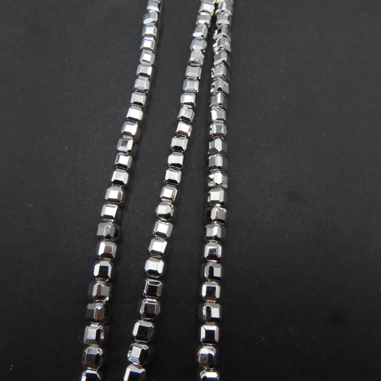 Hematyt kostka cięta 3 mm srebrny (sznur 39 cm)