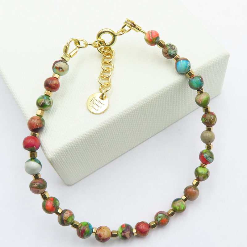 Bransoletka Jaspis Cesarski i Hematyt w srebrze złoconym.