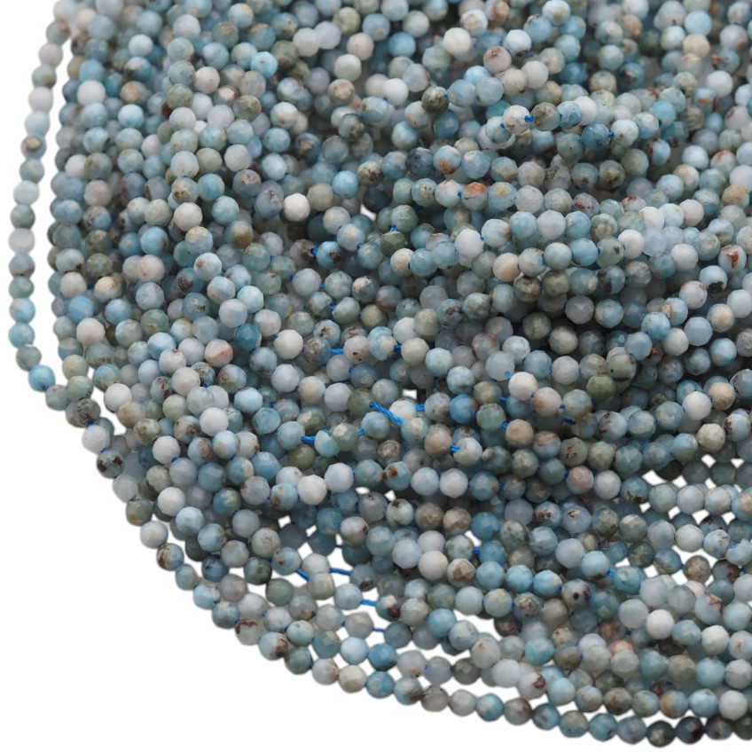 Naturalny larimar w formie drobnych, fasetowanych kulek zachwyca jasną, morską kolorystyką: odcieniami turkusu i błękitu z delikatnymi przejściami barw. Fasetowanie dodaje subtelnego połysku i sprawia, że kamienie pięknie pracują ze światłem, nadając całości lekko „biżuteryjny” charakter.
