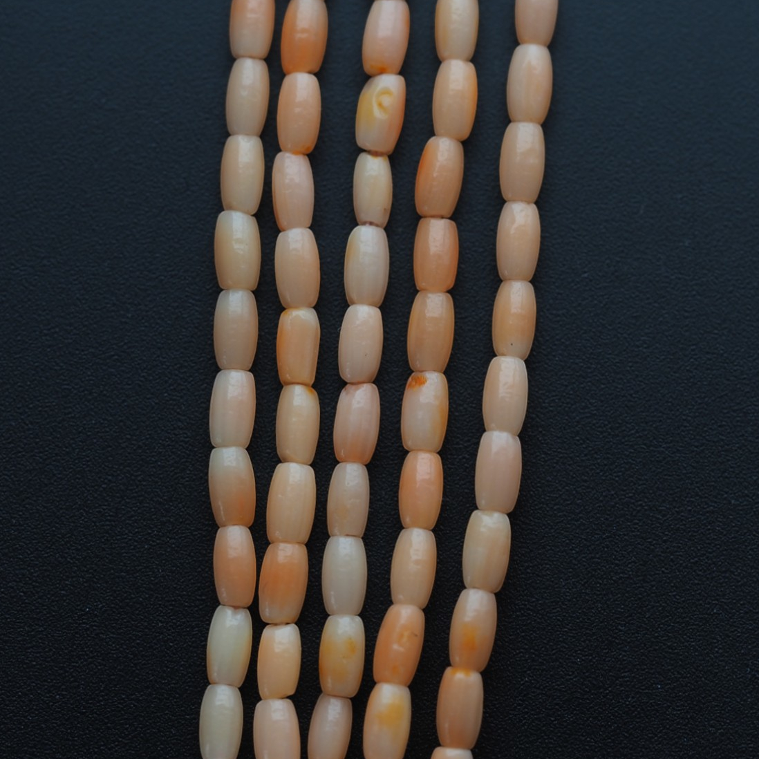 Naturalny koral różowy w formie drobnych elementów o kształcie beczki zachwyca pastelowym, ciepłym odcieniem różu. Delikatna kolorystyka i powtarzalny rytm kształtów tworzą spokojny, subtelny efekt, który dobrze wygląda zarówno z jasnymi metalami, jak i ze złotymi dodatkami.