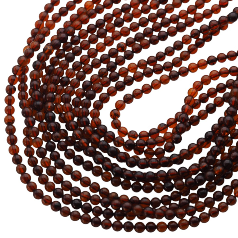 Bursztyn koniakowy w formie polerowanych kulek zachwyca ciepłym, miodowo‑brązowym odcieniem i subtelnym połyskiem. Gładka, równa powierzchnia podkreśla naturalny charakter bursztynu bałtyckiego i daje elegancki efekt w gotowej biżuterii.
