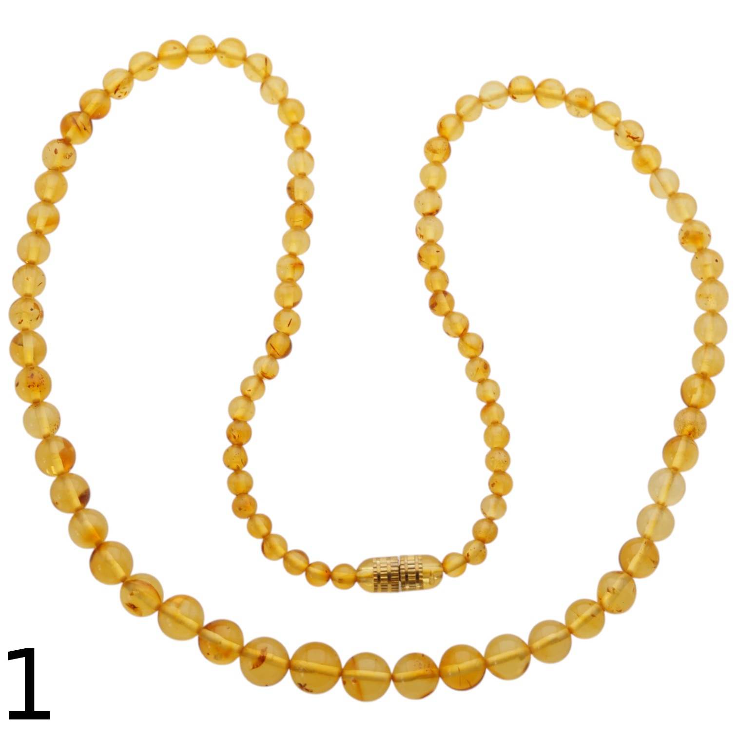 Naszyjnik wykonany z polerowanych kulek Bursztynu.