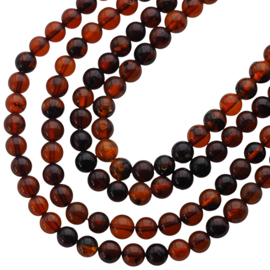 Bursztyn koniakowy w formie polerowanych kulek zachwyca ciepłą, miodowo-brązową tonacją i naturalną głębią koloru. Gładkie wykończenie podkreśla „biżuteryjny” połysk, dzięki czemu koraliki prezentują się elegancko i klasycznie.
