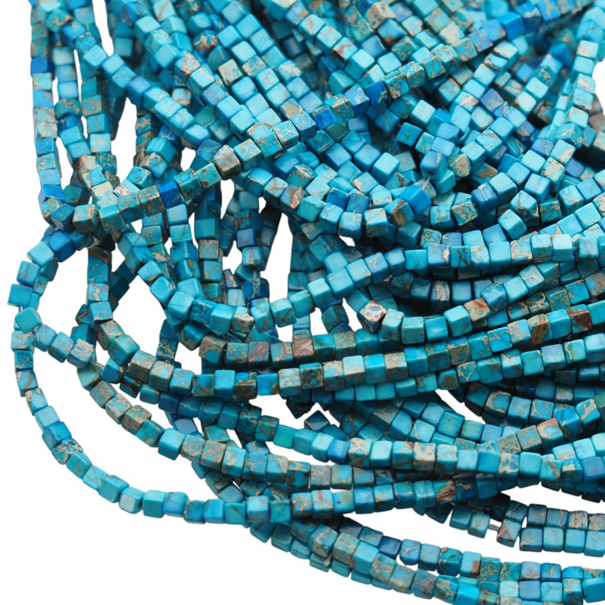 Jaspis cesarski niebieski w formie drobnych kostek ma spokojny, elegancki charakter. Geometryczna bryła nadaje projektom nowoczesności, a niebieska kolorystyka dobrze łączy się zarówno z jasnymi, jak i ciemnymi dodatkami.