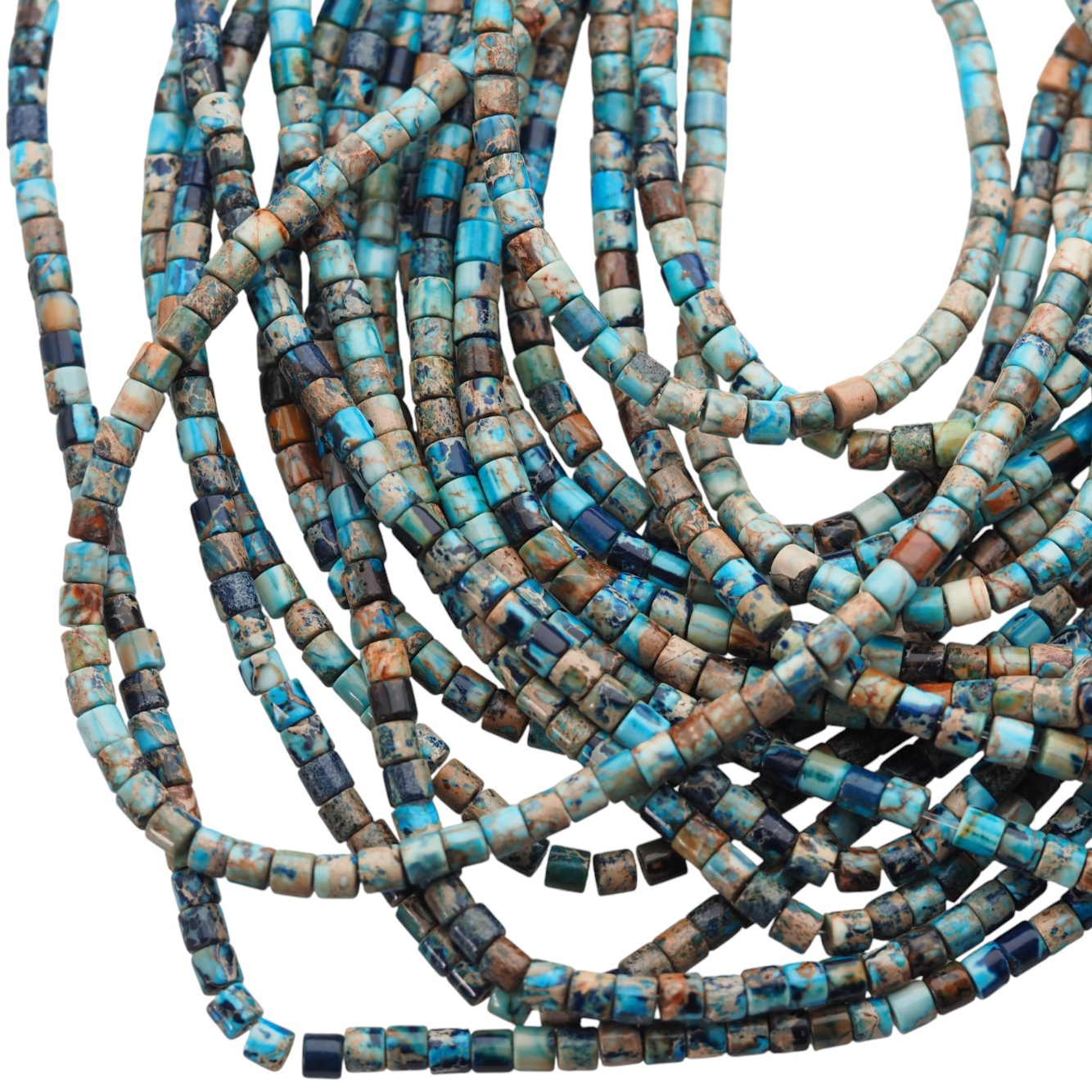 Jaspis cesarski niebieski w formie drobnych elementów o kształcie walca przyciąga uwagę chłodną, elegancką tonacją niebieskiego. Regularna geometria pomaga uzyskać w biżuterii uporządkowany rytm i równe odstępy, dzięki czemu kompozycje wyglądają schludnie i „jubilersko”.