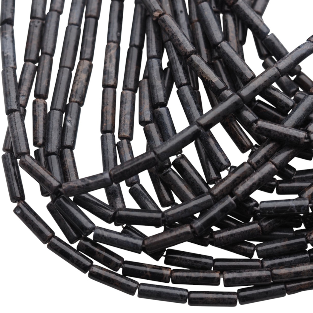 Jaspis cesarski czarny w formie walców to elegancki półfabrykat o głębokiej, ciemnej kolorystyce i prostej, jubilersko uporządkowanej bryle. Cylindryczny kształt podkreśla rytm kompozycji i nadaje projektom nowoczesny, spokojny charakter.
