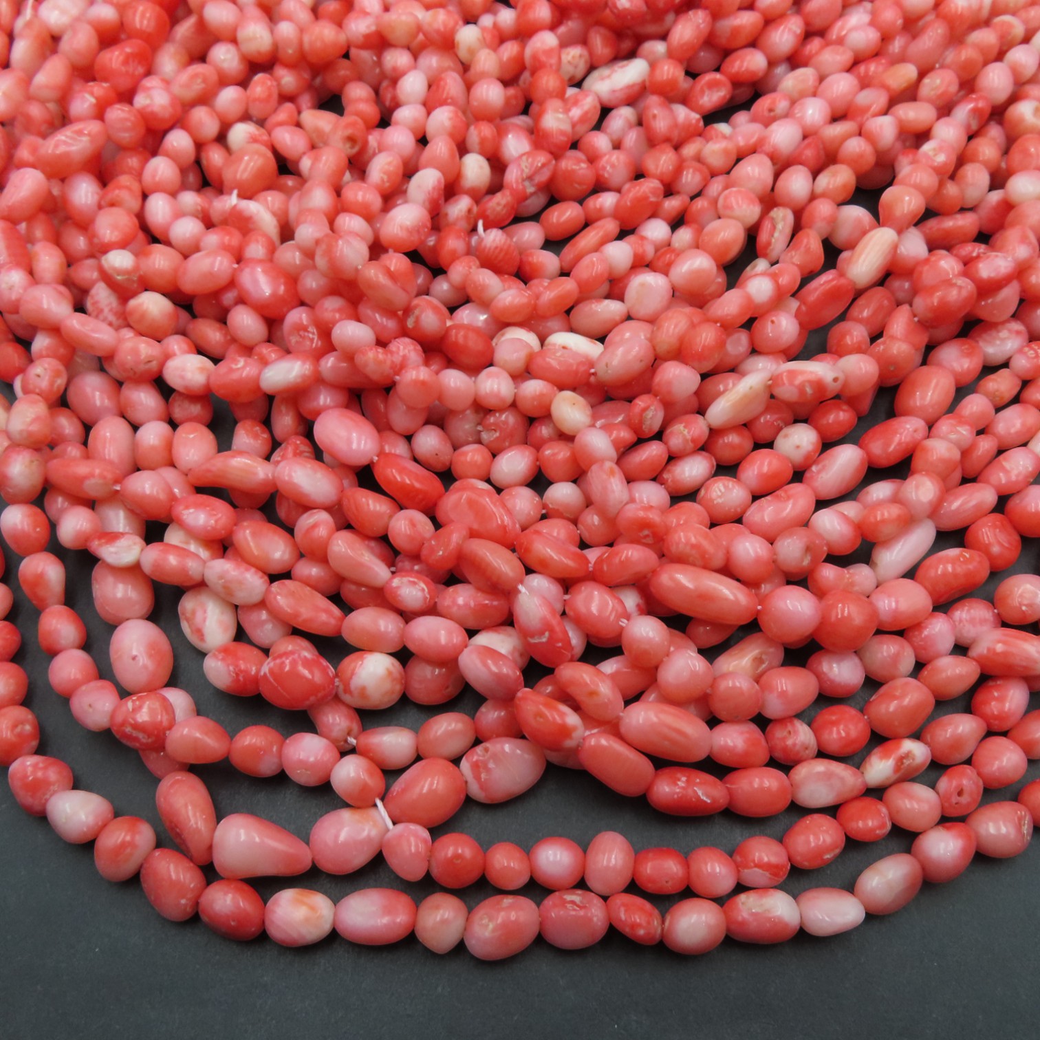 Naturalny koral różowy w formie nieregularnych kamyków tworzy na sznurze lekki, organiczny rytm. Delikatny odcień różu ociepla kompozycje, a subtelna zmienność kształtów podkreśla naturalny, rzemieślniczy charakter biżuterii.