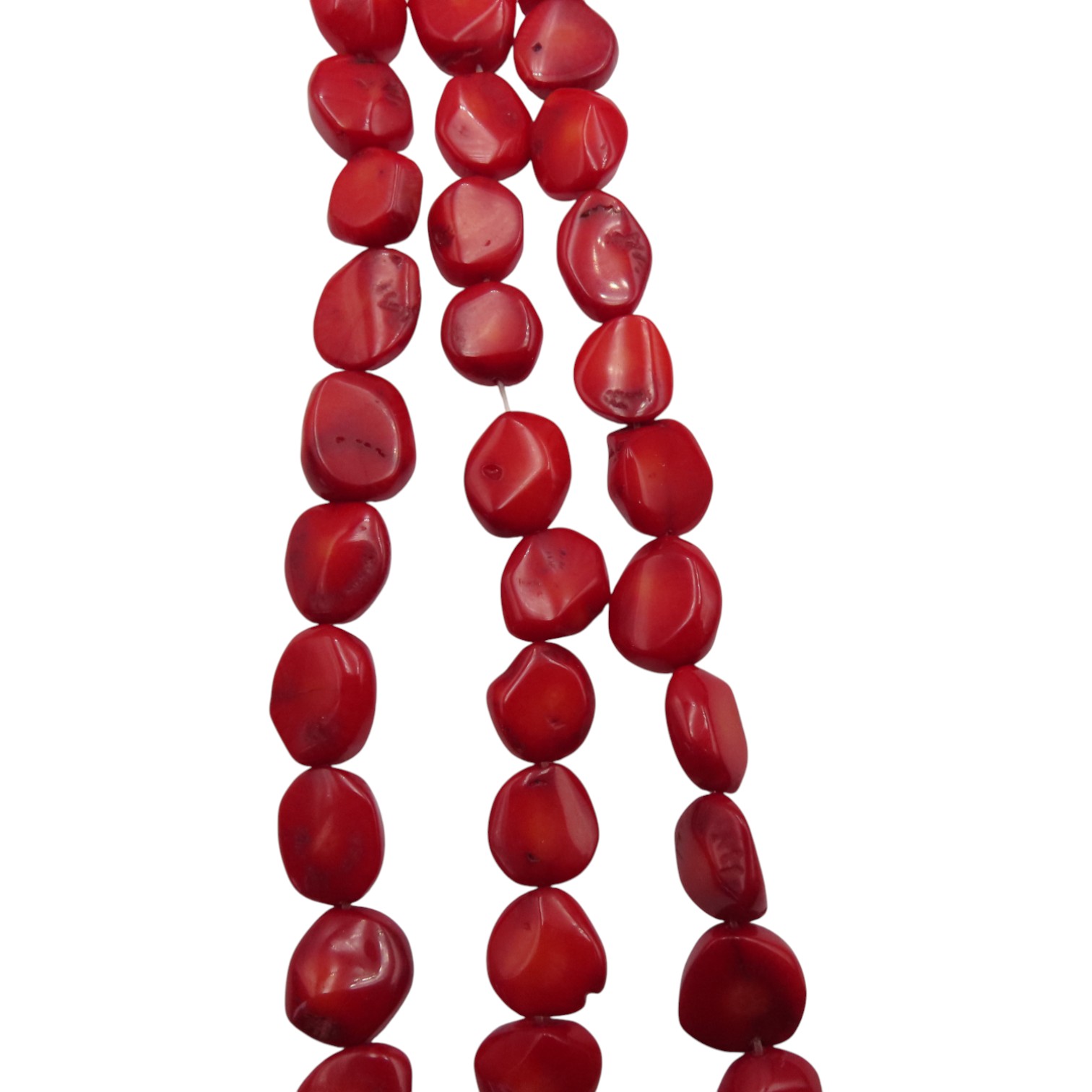 Naturalny koral czerwony w formie płaskich, nieregularnych kamyków wyróżnia się intensywną, ciepłą czerwienią i organicznym rysunkiem. Taki kształt daje wrażenie lekkości oraz efekt „ręcznie komponowanej” biżuterii, w której każdy element wygląda nieco inaczej.