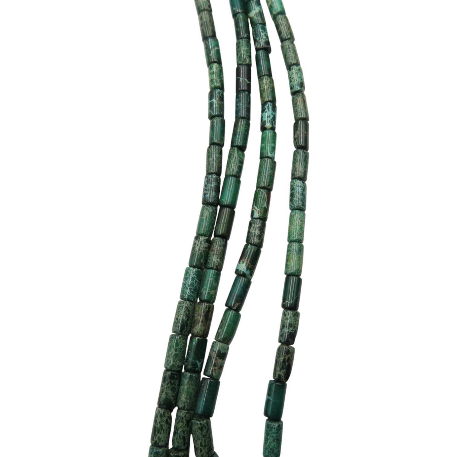 Jaspis cesarski zielony w formie walca to elegancki półfabrykat o uporządkowanej, geometrycznej linii. Cylindryczny kształt dobrze eksponuje kolor kamienia i pozwala budować rytm w projekcie – od delikatnych przejść po wyraźniejsze, segmentowe kompozycje.