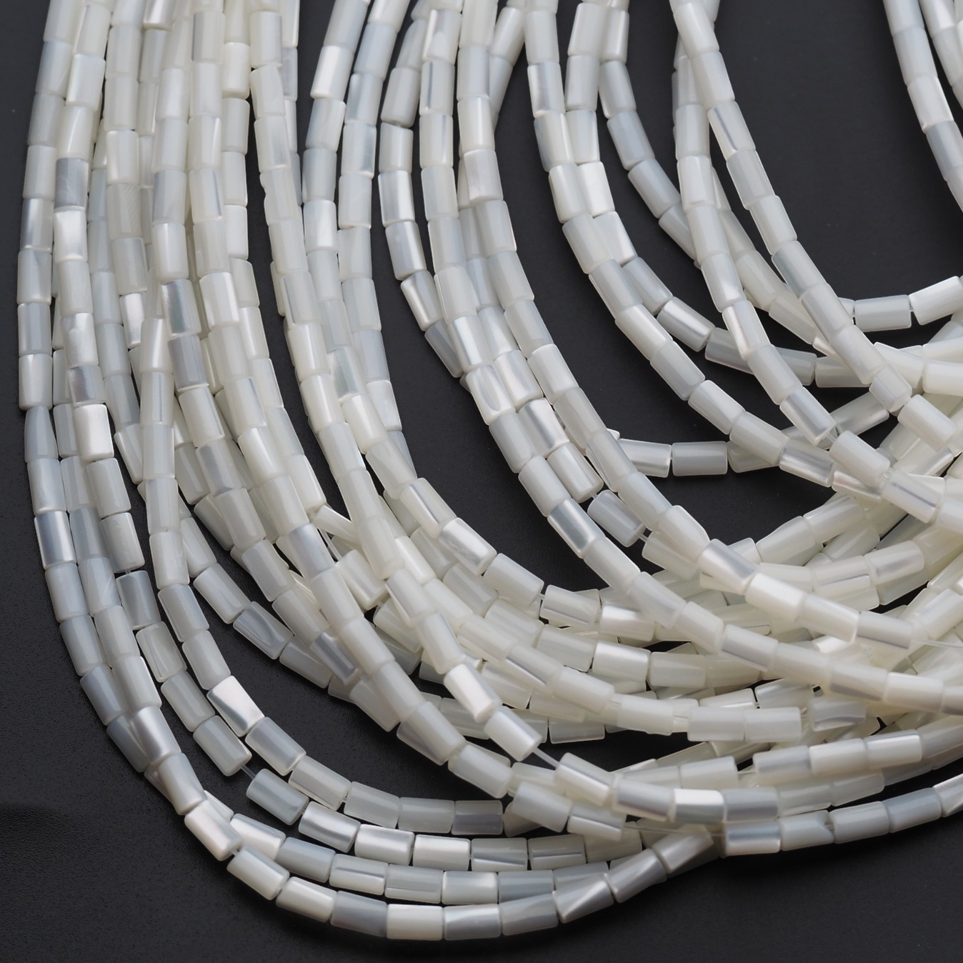 Naturalna muszla biała w formie drobnych walców to jasny, elegancki element o lekkim, perłowym charakterze. Neutralny odcień bieli dobrze rozjaśnia kompozycje i podkreśla kolor innych kamieni, a walcowy kształt nadaje projektom rytm i uporządkowaną linię.