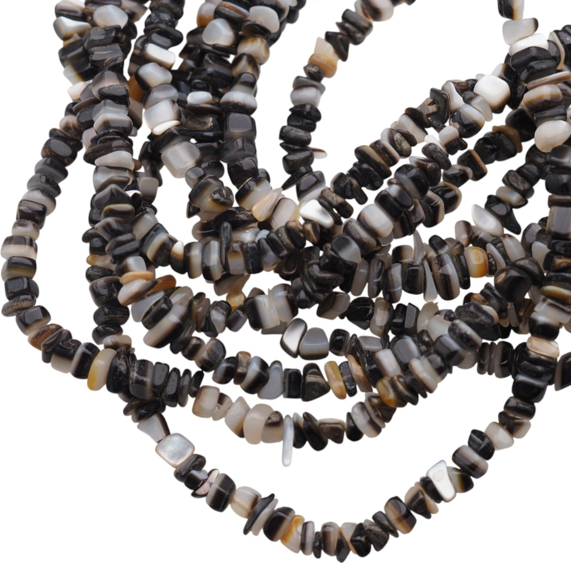 Naturalna muszla czarna w formie sieczki to drobne, nieregularne elementy o ciemnej, eleganckiej tonacji. Taka forma dodaje kompozycjom lekkości i struktury, a zarazem podkreśla naturalny charakter biżuterii.