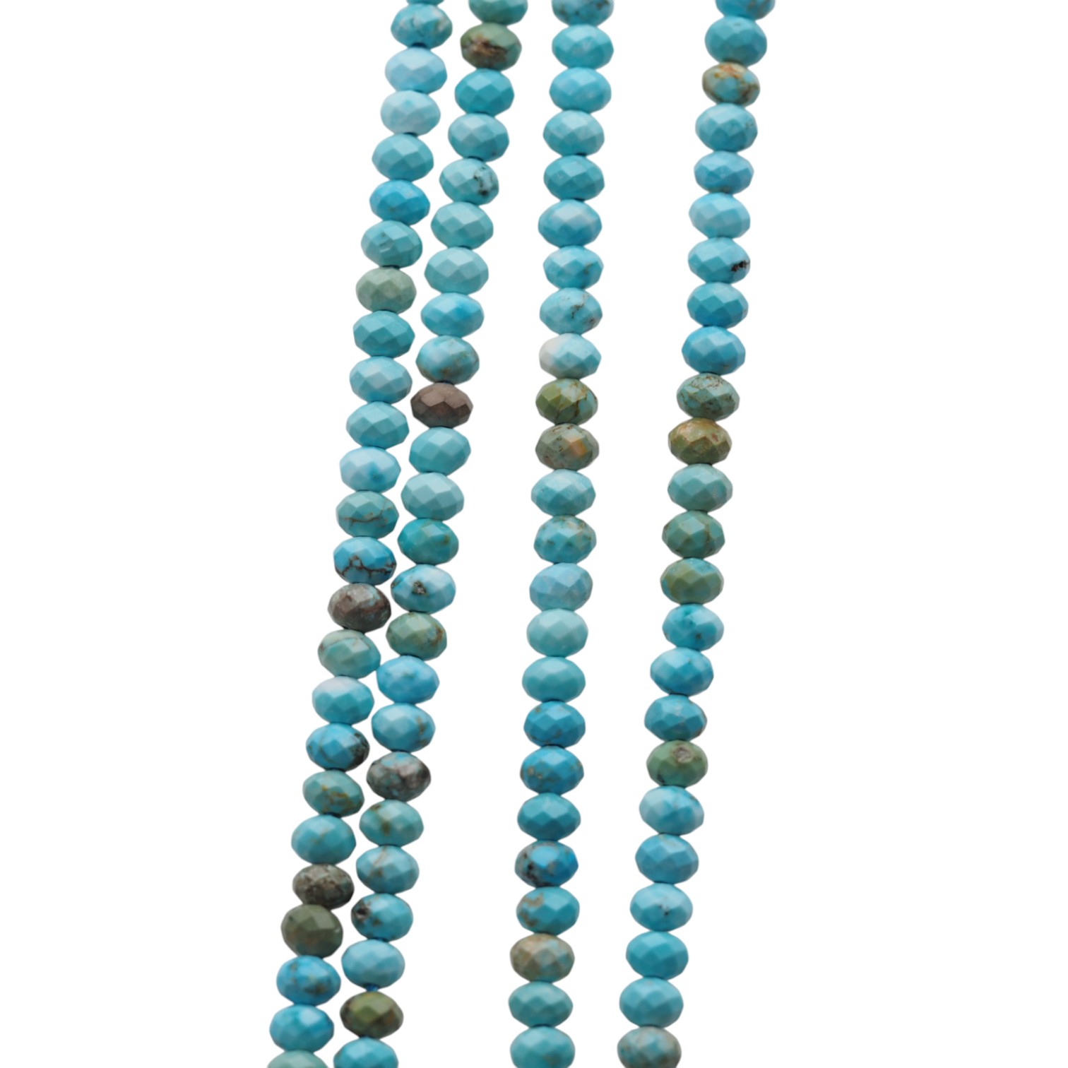 Naturalny turkus fasetowany w drobnej, regularnej formie przyciąga uwagę charakterystycznym, jubilerskim połyskiem. Fasetowanie podkreśla kolor kamienia i dodaje mu lekko „iskrzącego” efektu w gotowych projektach.