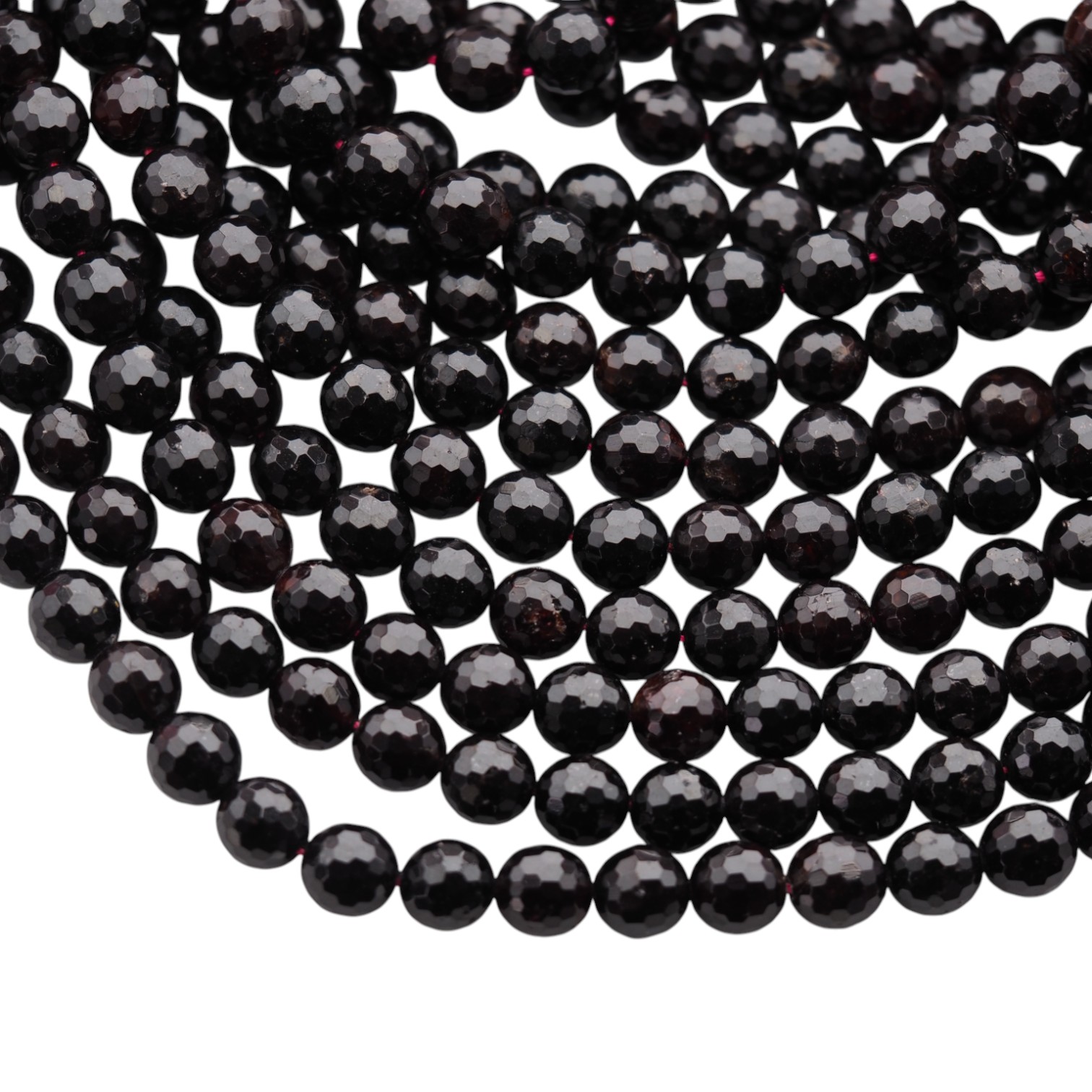 Naturalny granat w formie fasetowanych kulek zachwyca głębokim, eleganckim charakterem i szlachetnym połyskiem wynikającym z cięcia fasetowego. To kamień o wyrazistej prezencji, który dobrze podbija zarówno klasyczne, jak i bardziej nowoczesne projekty.