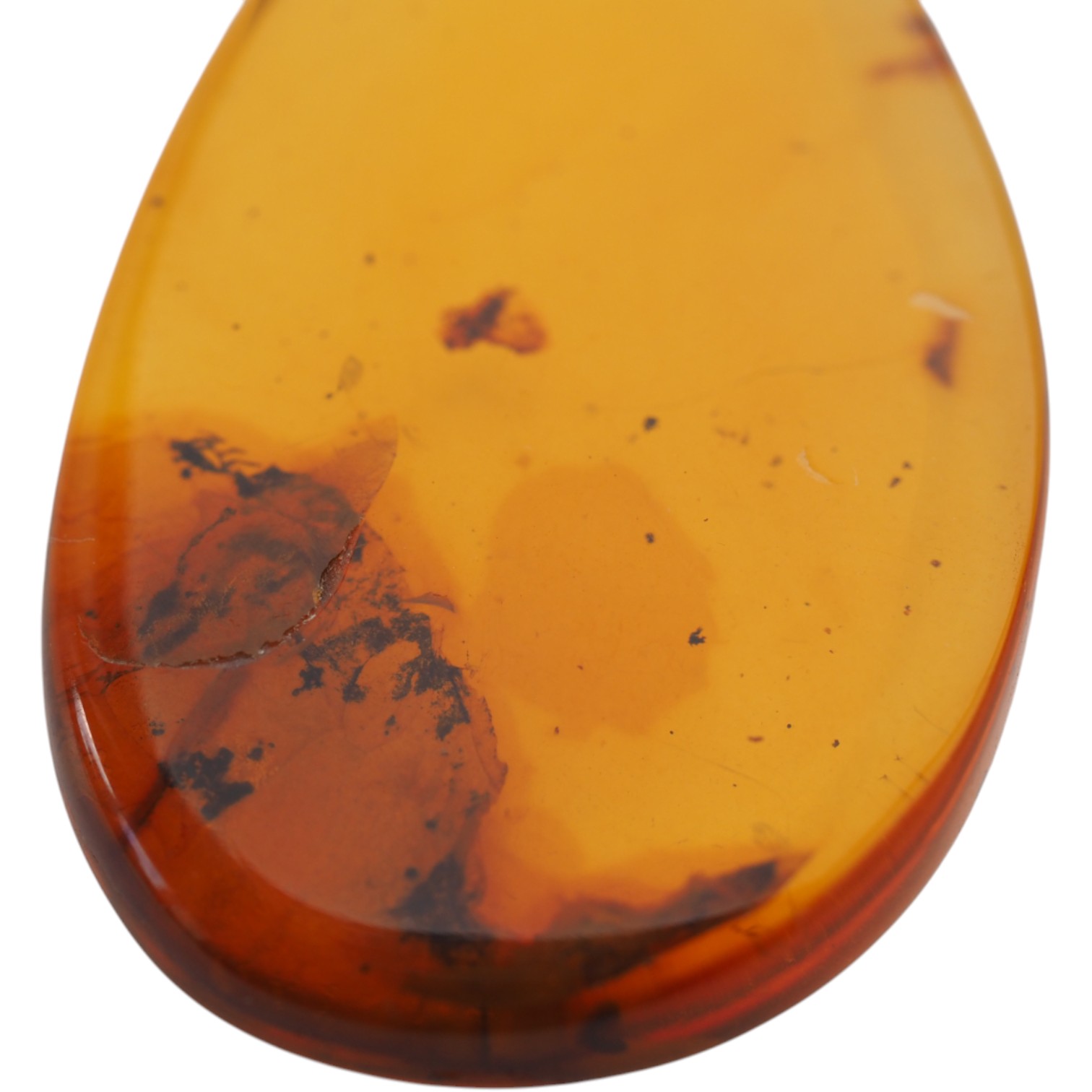 Dzięki starannemu polerowaniu powierzchnia bursztynu jest gładka i lśniąca, a jednocześnie zachowuje naturalny wygląd i lekko nieregularne refleksy, charakterystyczne dla autentycznego materiału kopalnego.