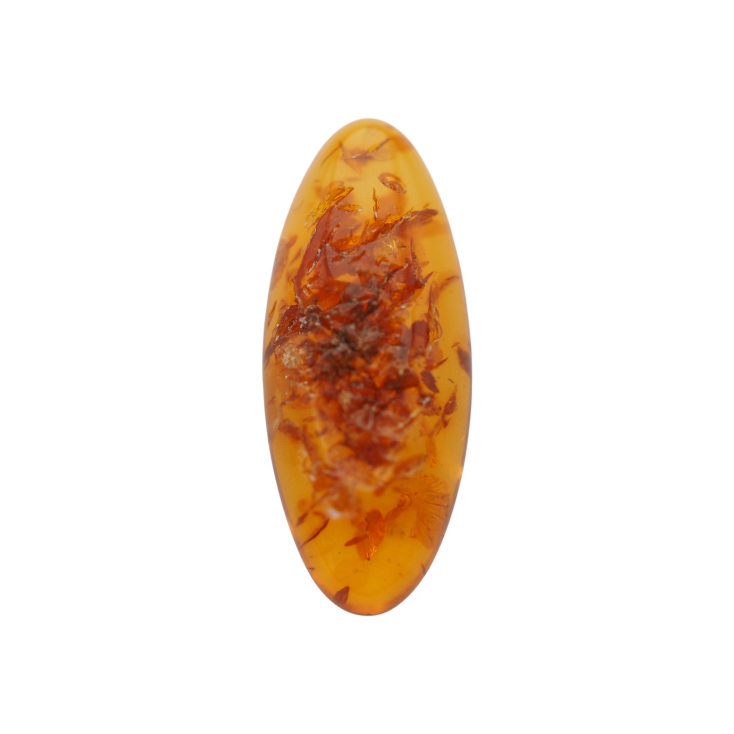 Kaboszon z naturalnego bursztynu bałtyckiego o kształcie markizy.