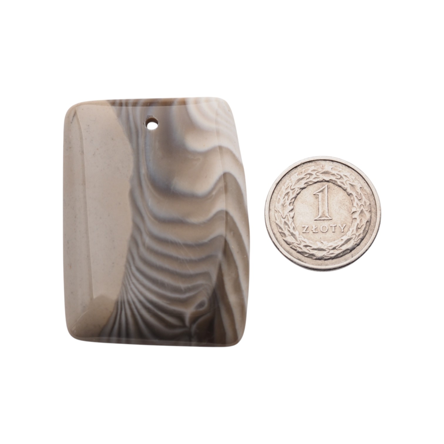 Ten element jest wiercony u góry, co ułatwia wykorzystanie w projektach zawieszek bez konieczności oprawy. Sprawdzi się zarówno w biżuterii autorskiej, jak i w kolekcjach pracowni handmade – jako mocny, naturalny akcent w prostych formach.
