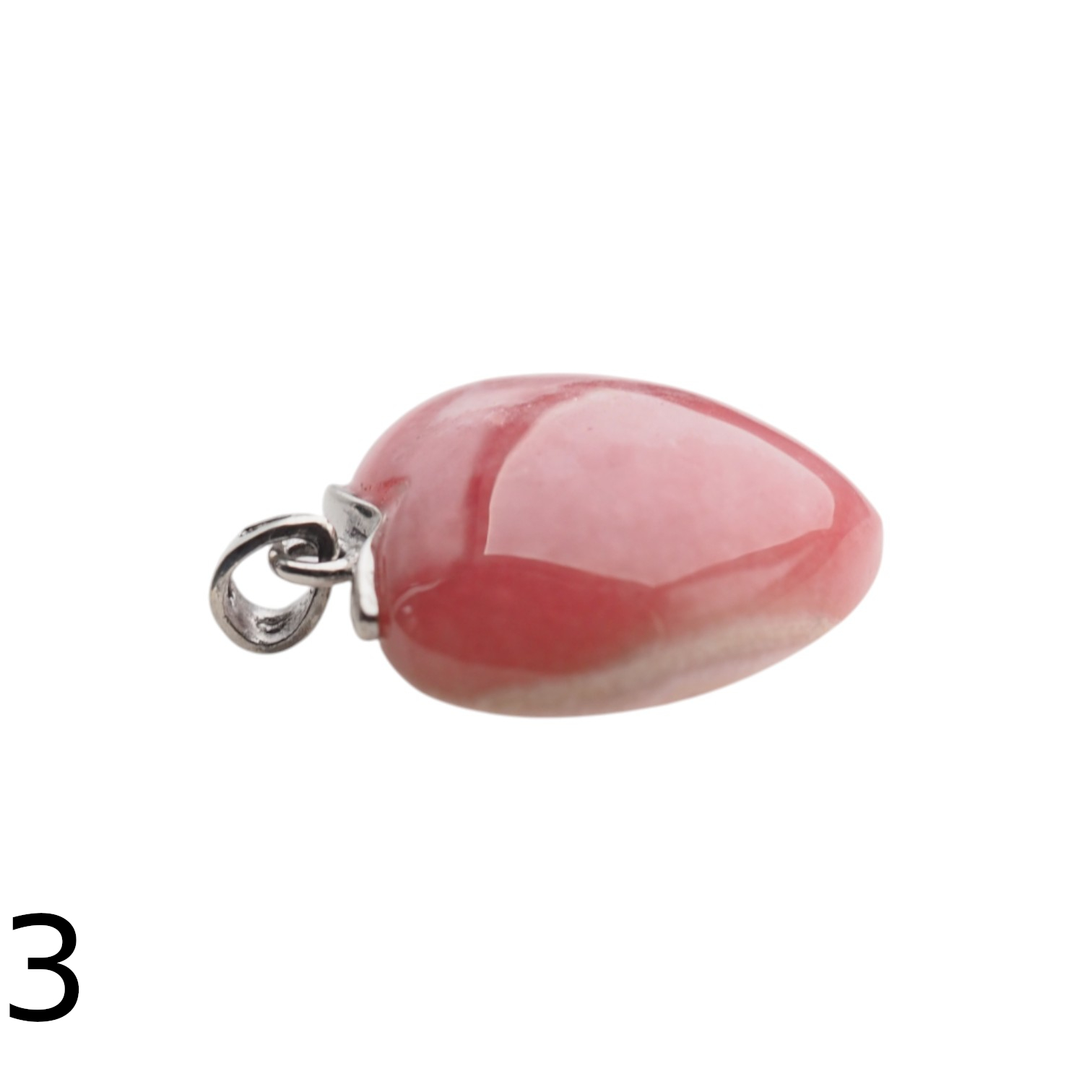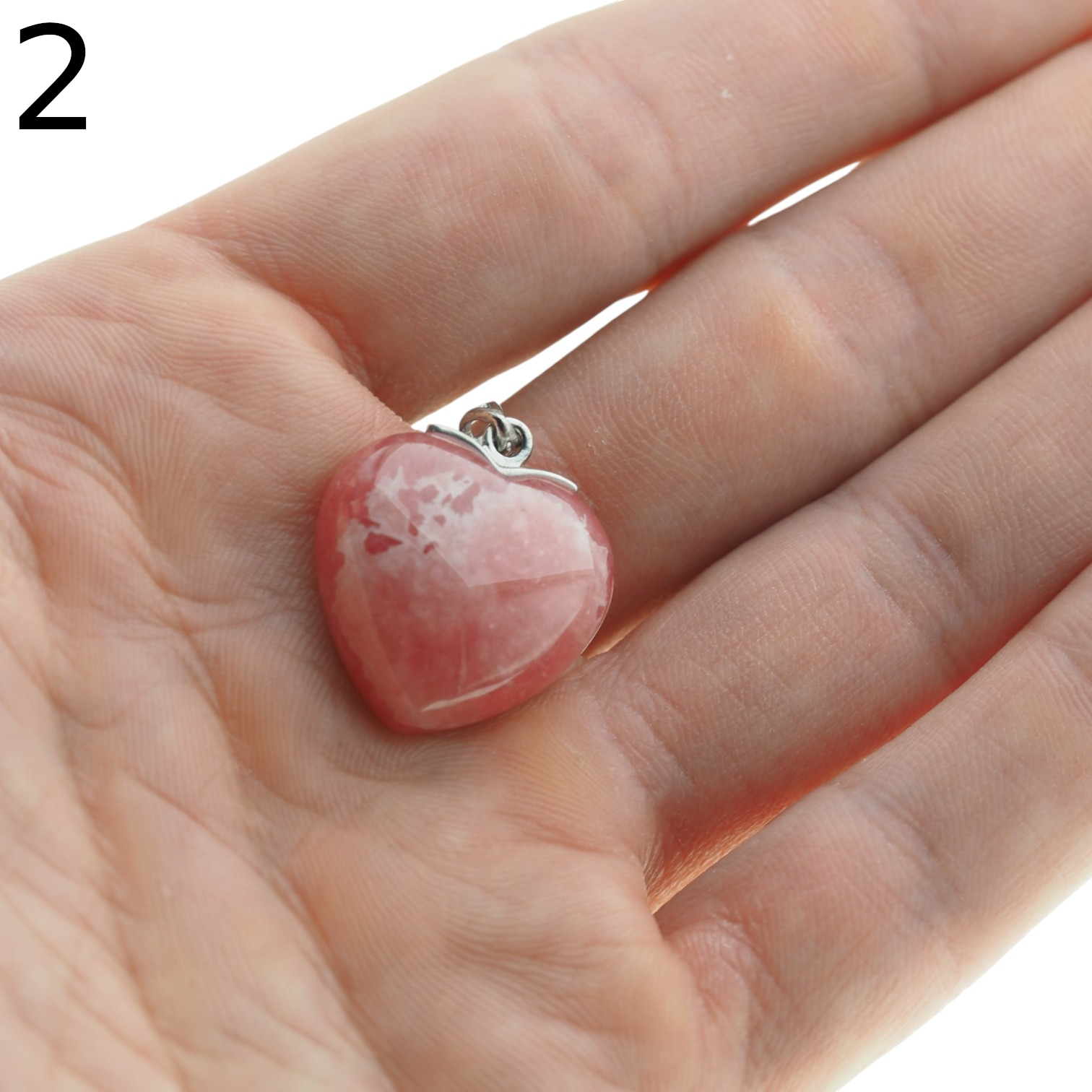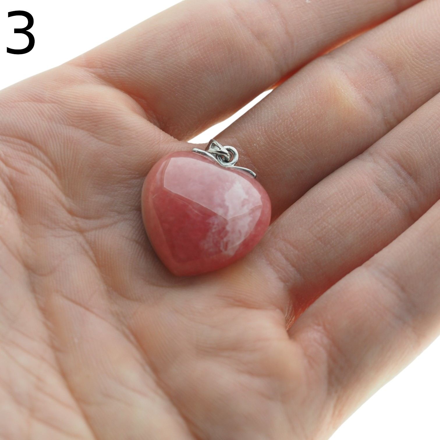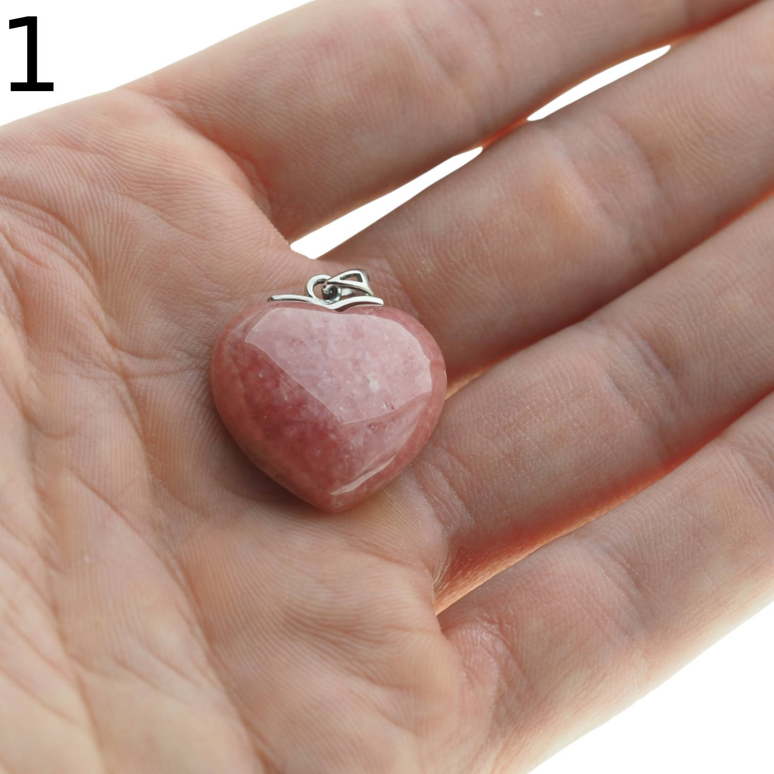 Ręcznie wykonana zawieszka z naturalnego rodochrozytu w kształcie serca przyciąga wzrok ciepłą, różową tonacją kamienia. Całość osadzono w srebrnej oprawie, co nadaje biżuterii elegancki, jubilerski charakter.
