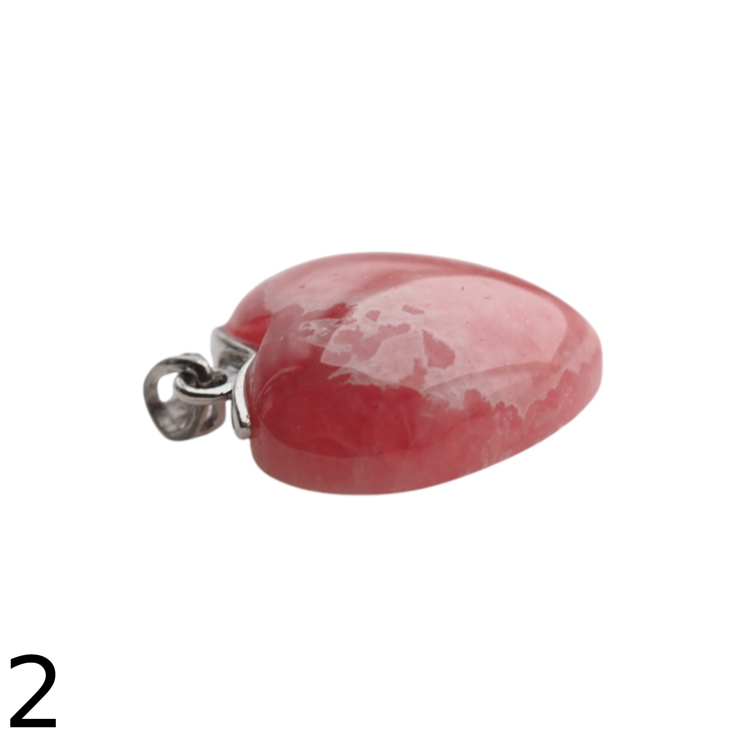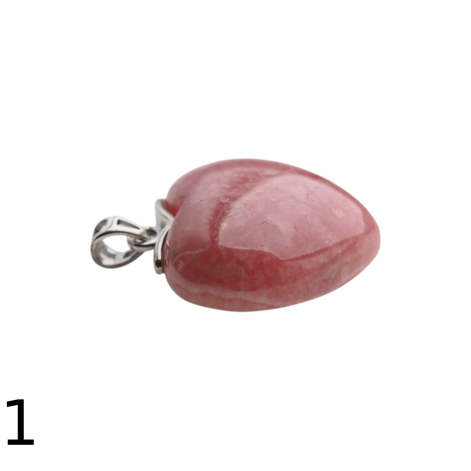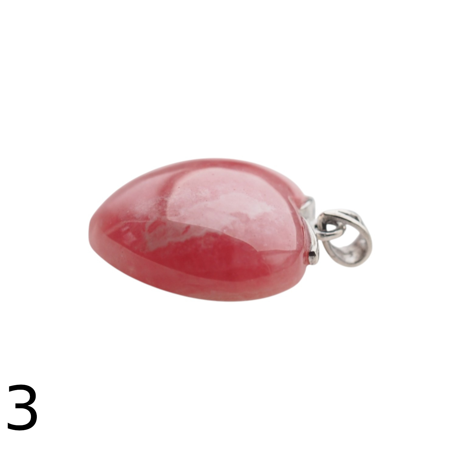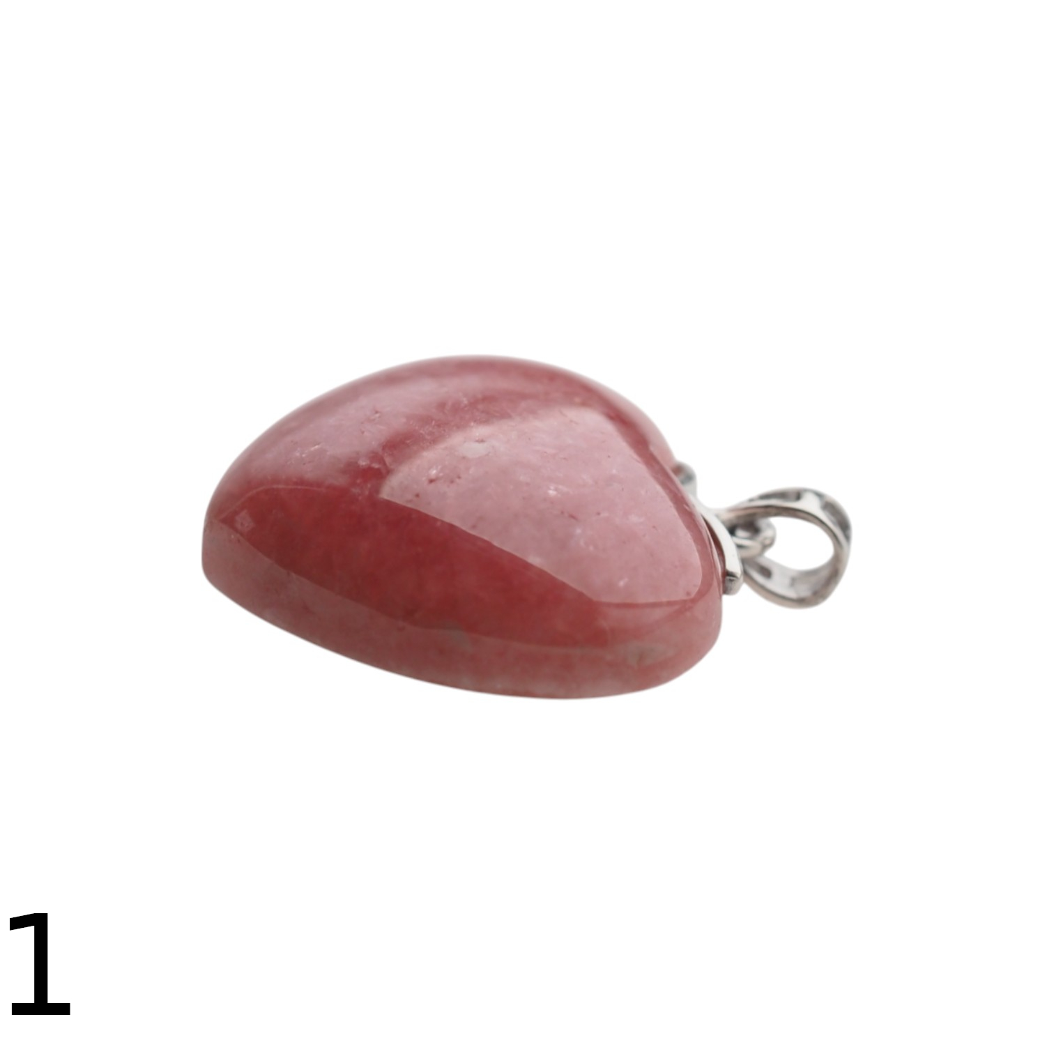 Ręcznie wykonana zawieszka z naturalnego rodochrozytu w kształcie serca przyciąga wzrok ciepłą, różową tonacją kamienia. Całość osadzono w srebrnej oprawie, co nadaje biżuterii elegancki, jubilerski charakter.