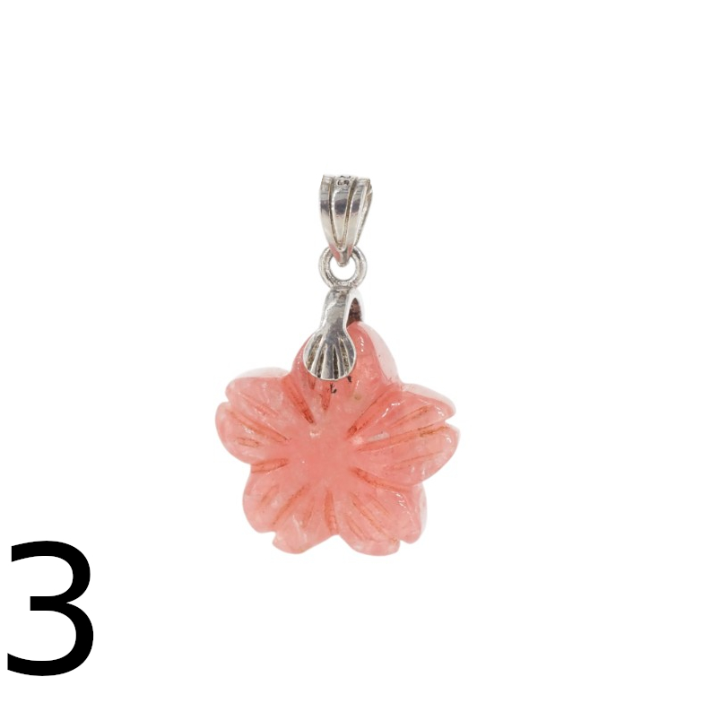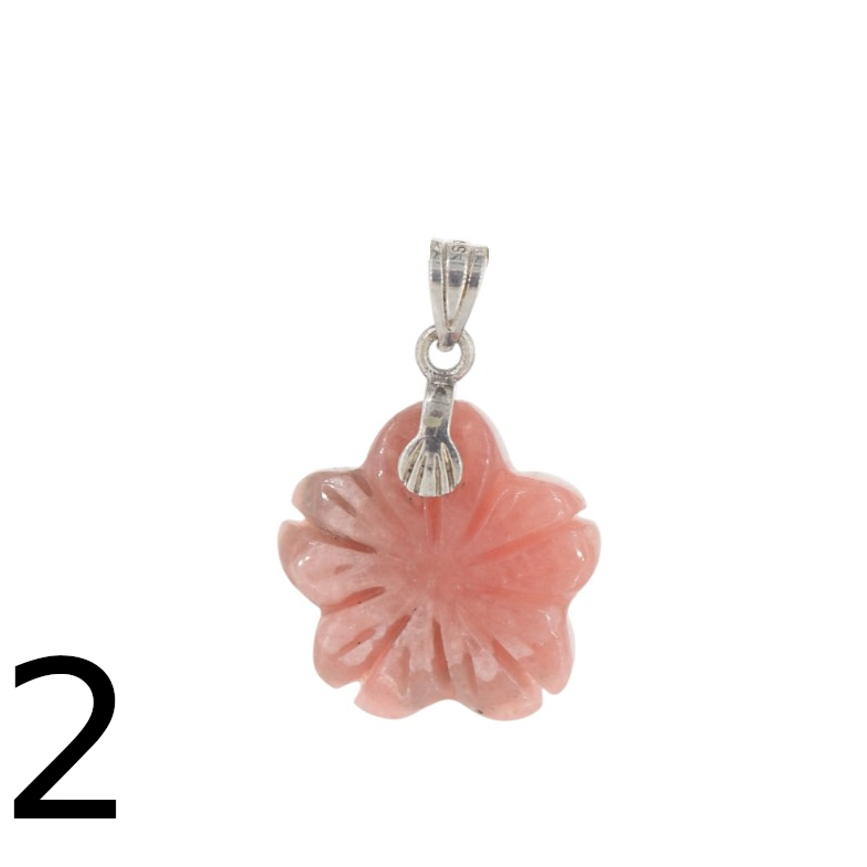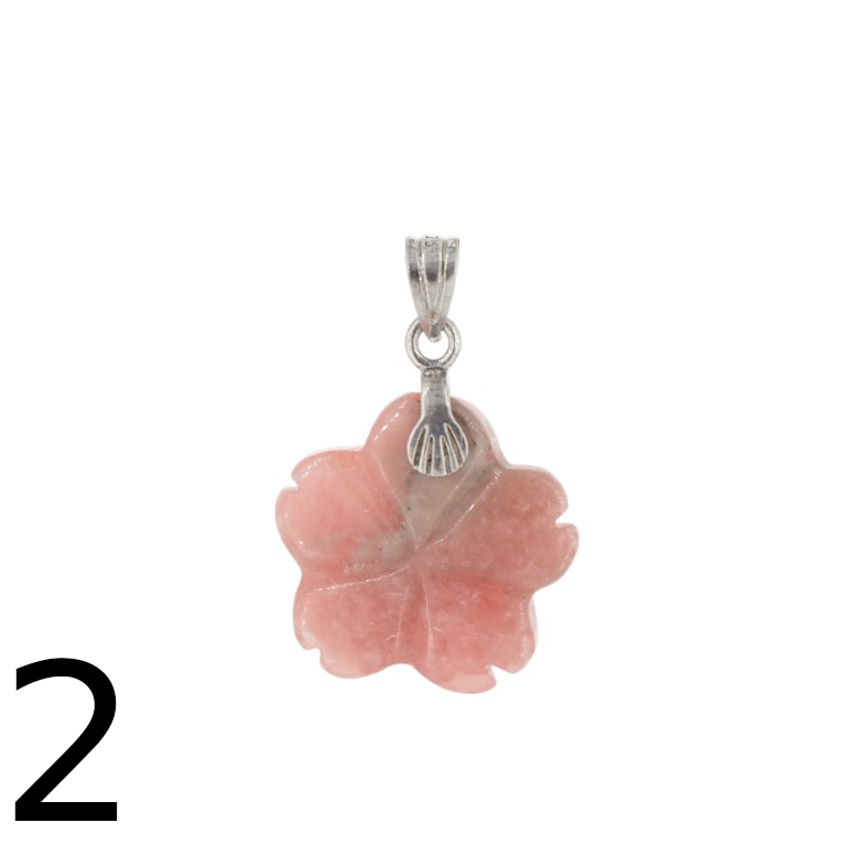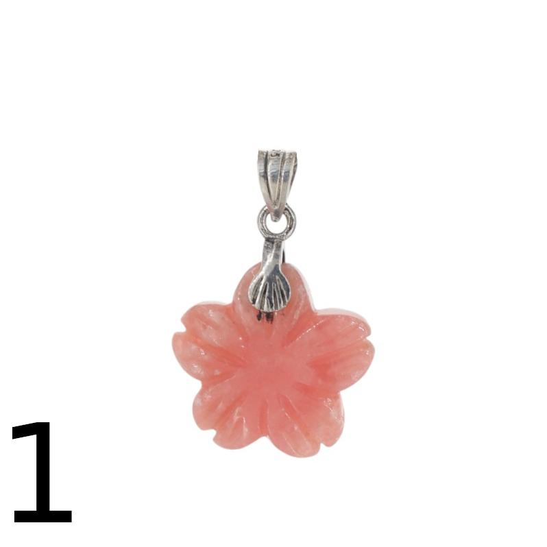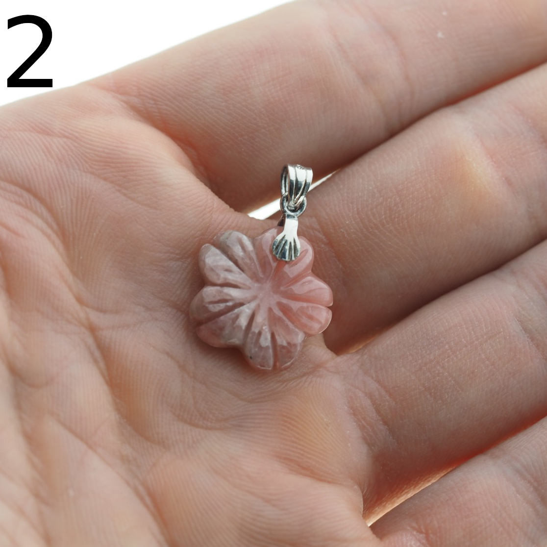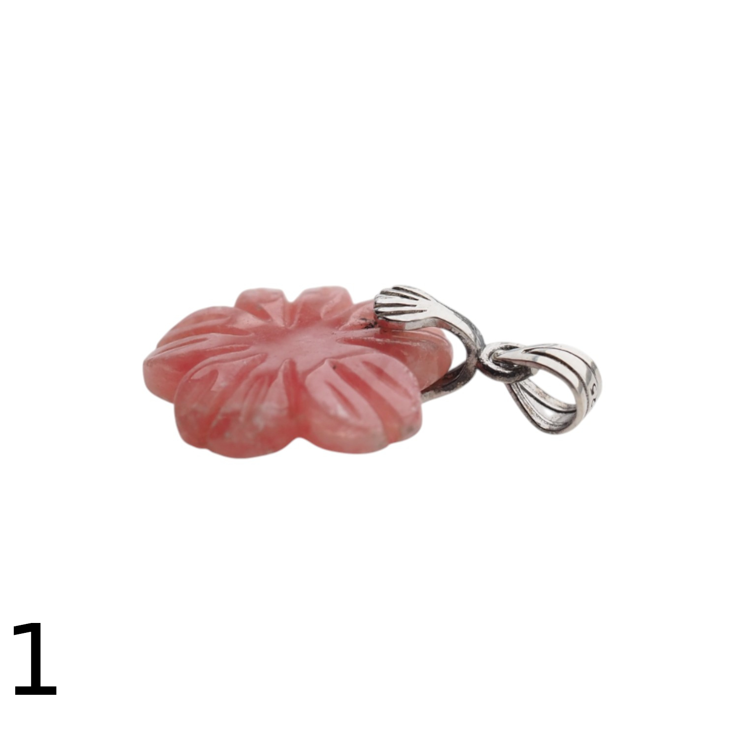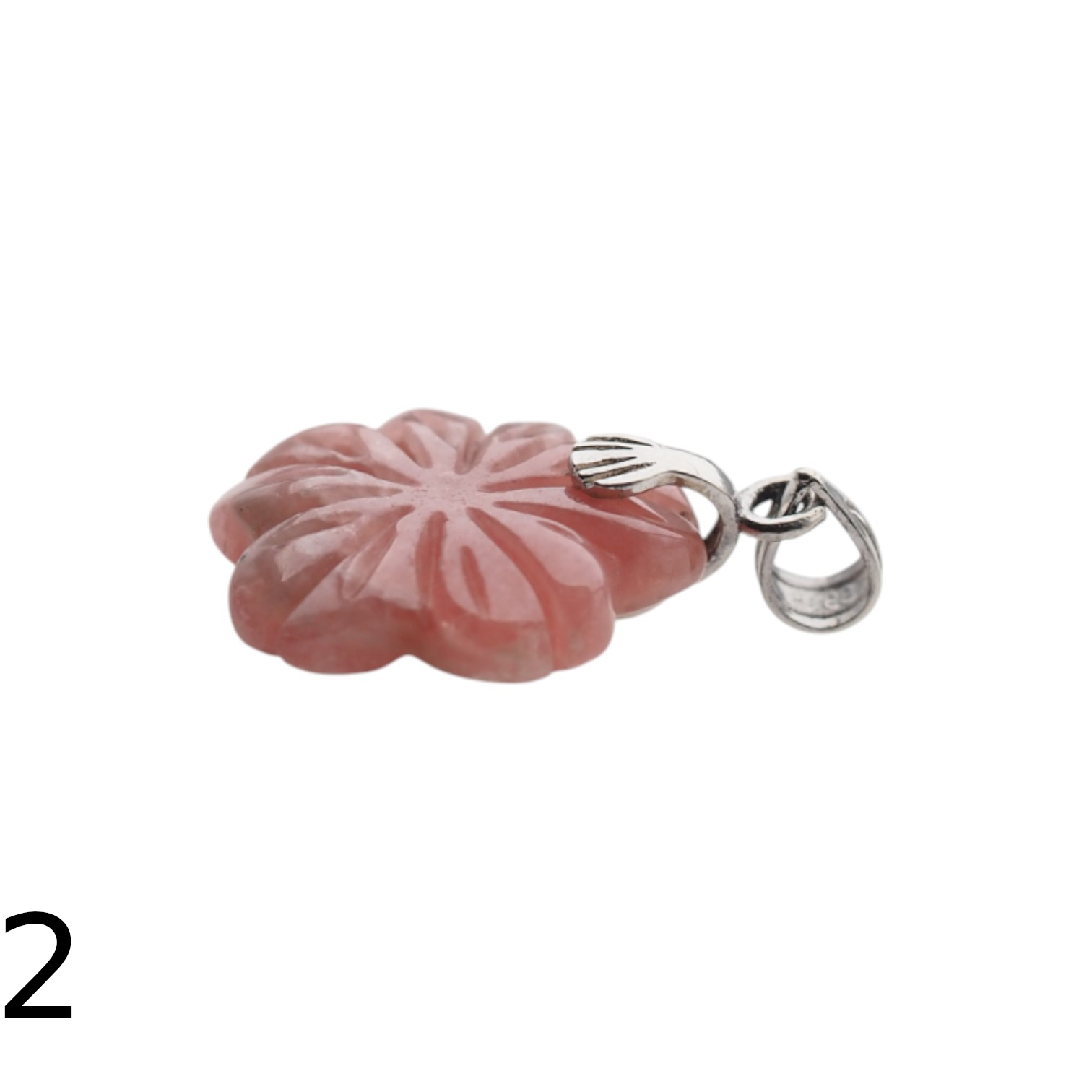 Zawieszka ręcznie utworzona z Rodochrozytem w kształcie rzeźbionego kwiatka.