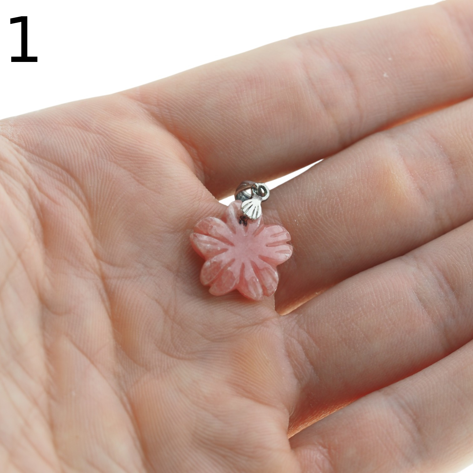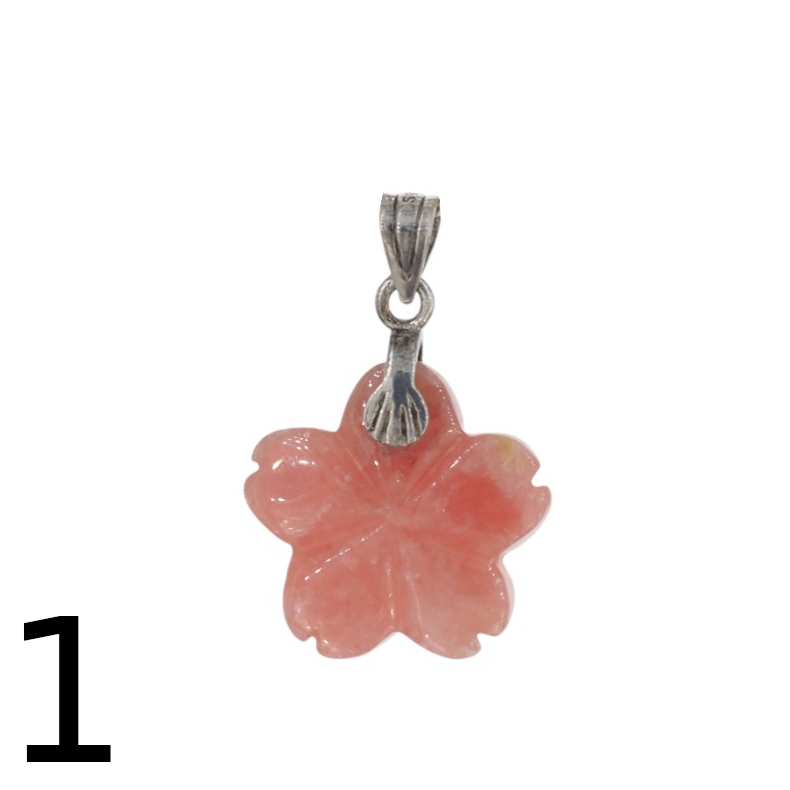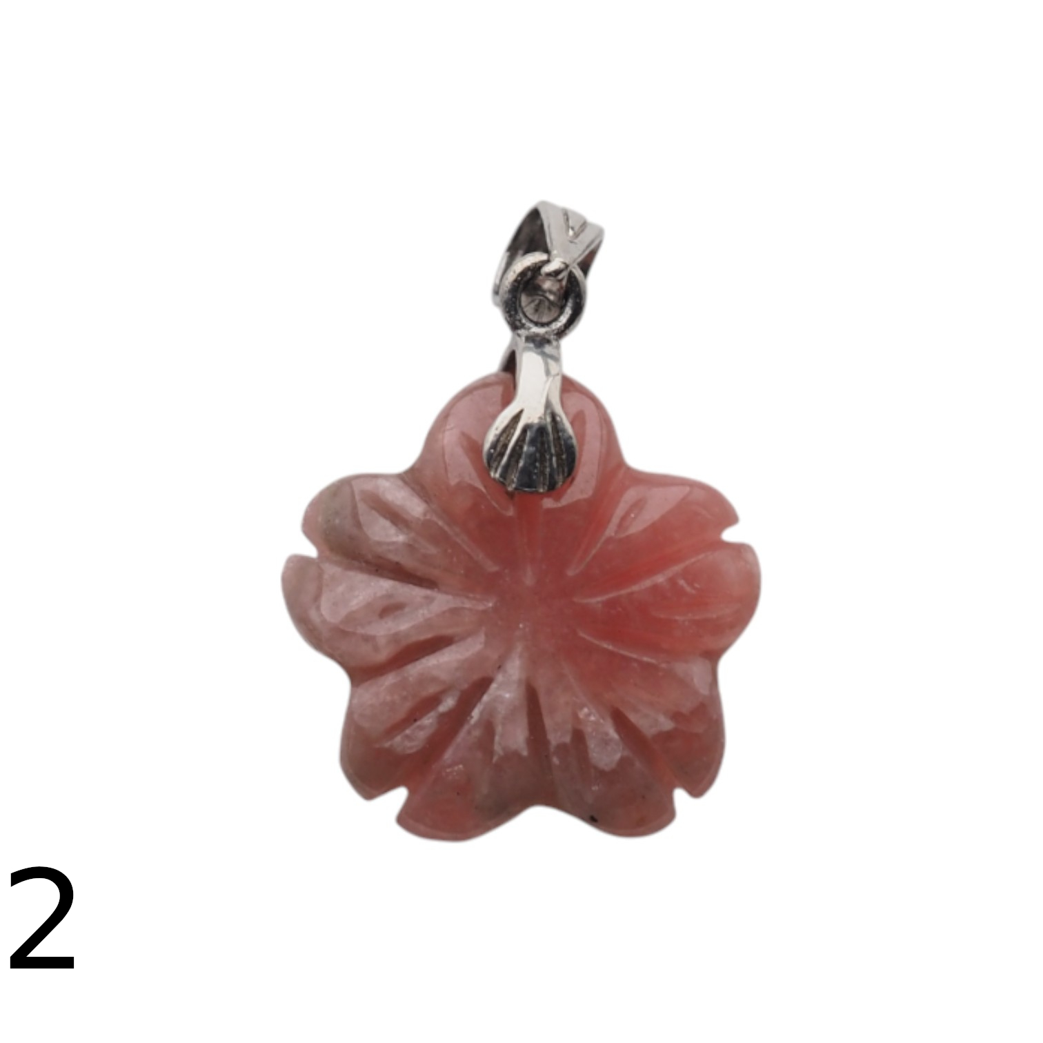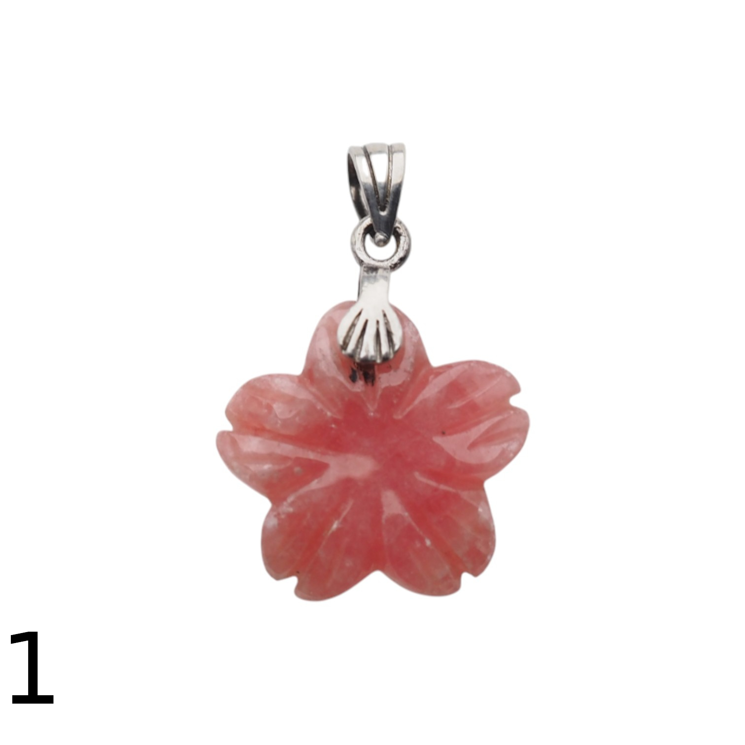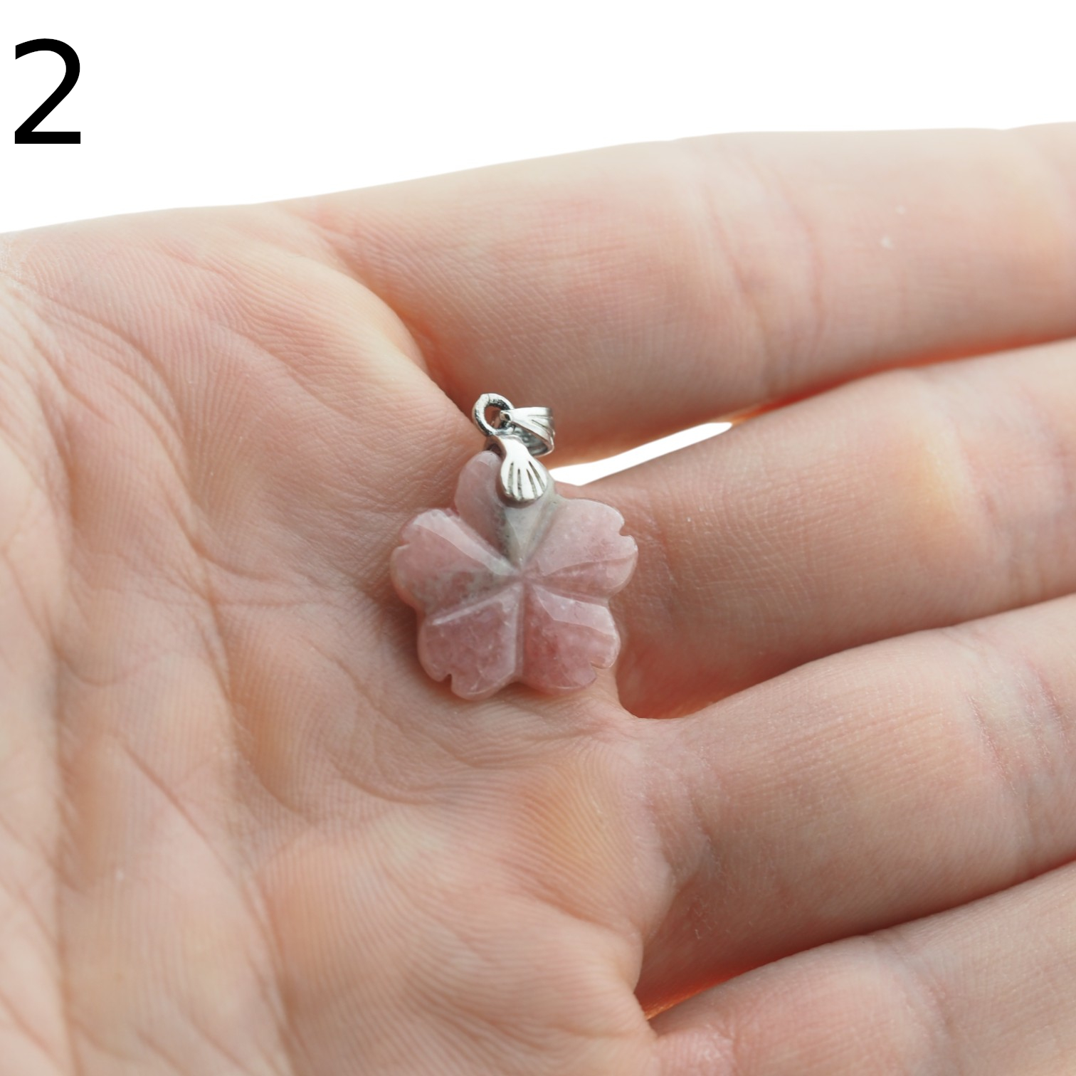 Zawieszka ręcznie utworzona z Rodochrozytem w kształcie rzeźbionego kwiatka.