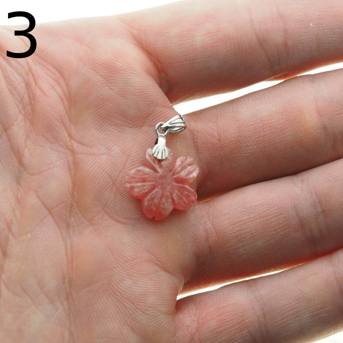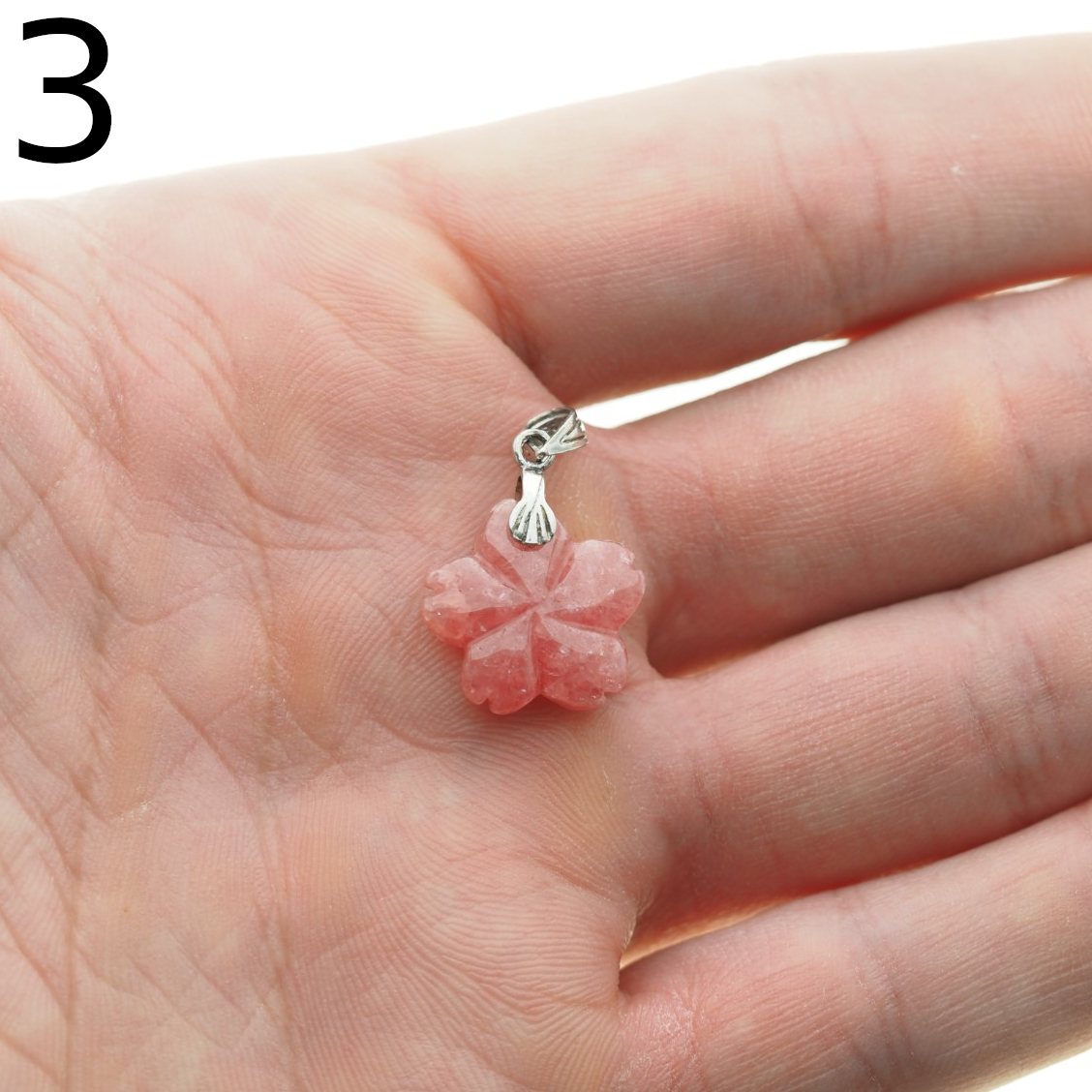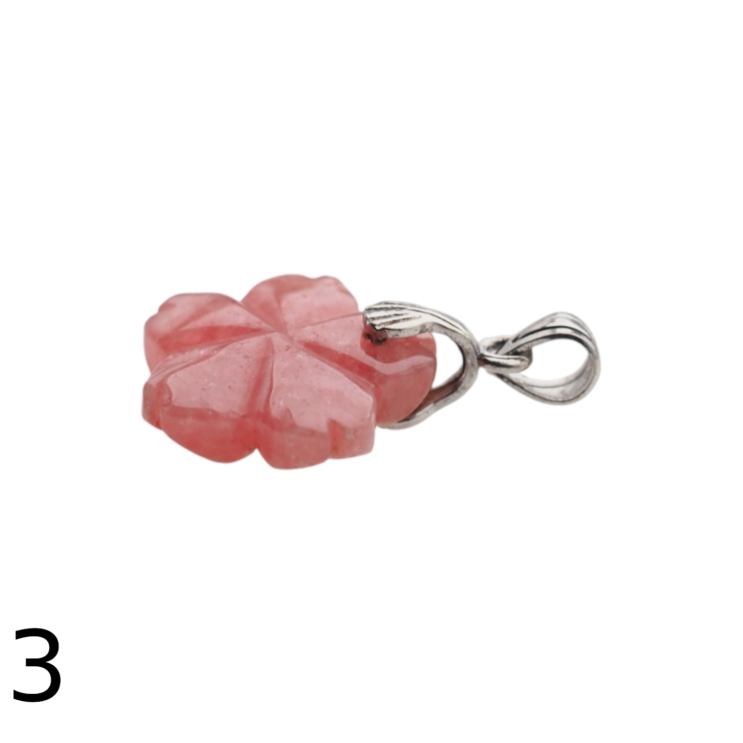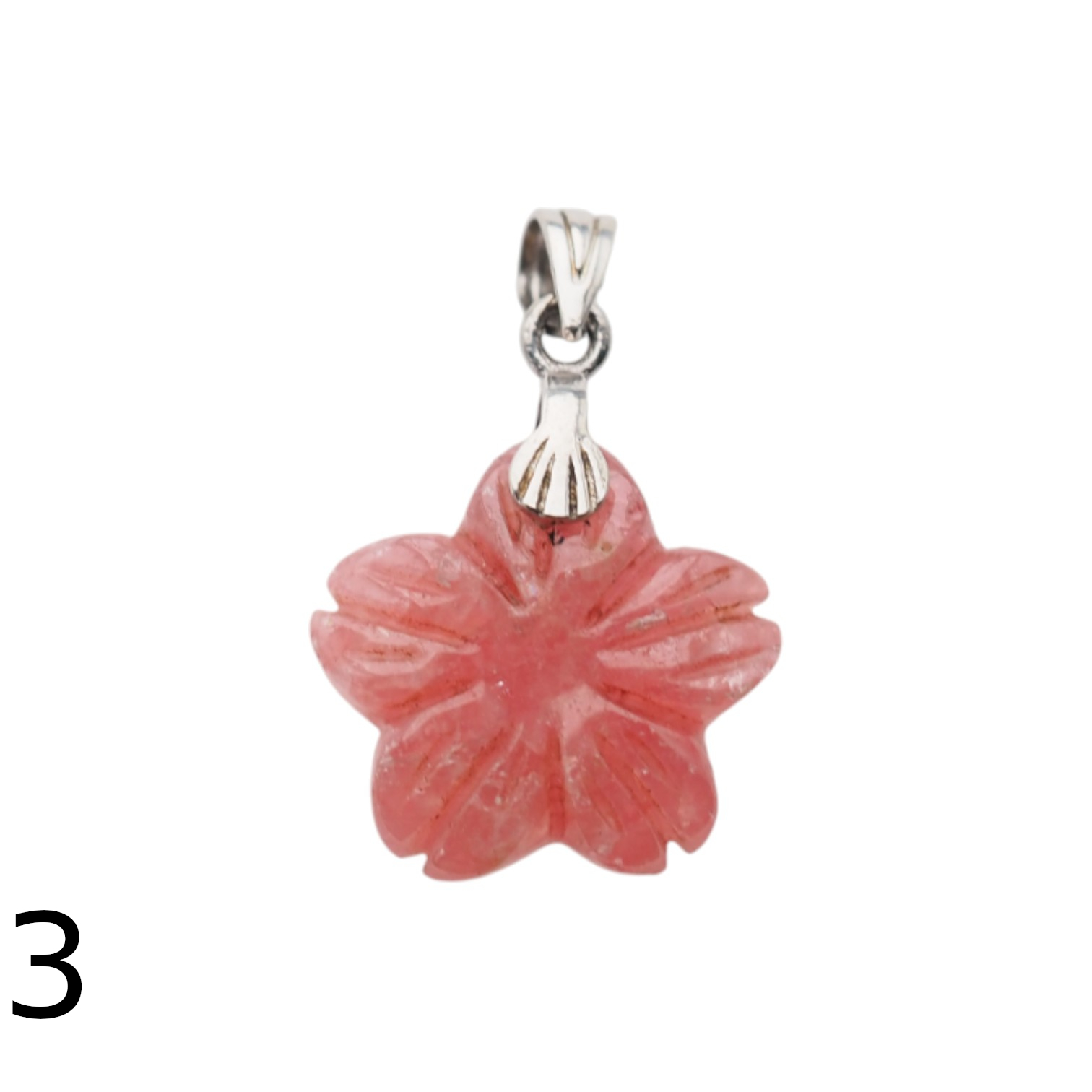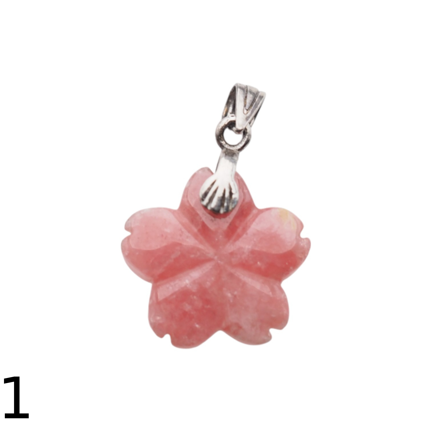 Zawieszka ręcznie utworzona z Rodochrozytem w kształcie rzeźbionego kwiatka.