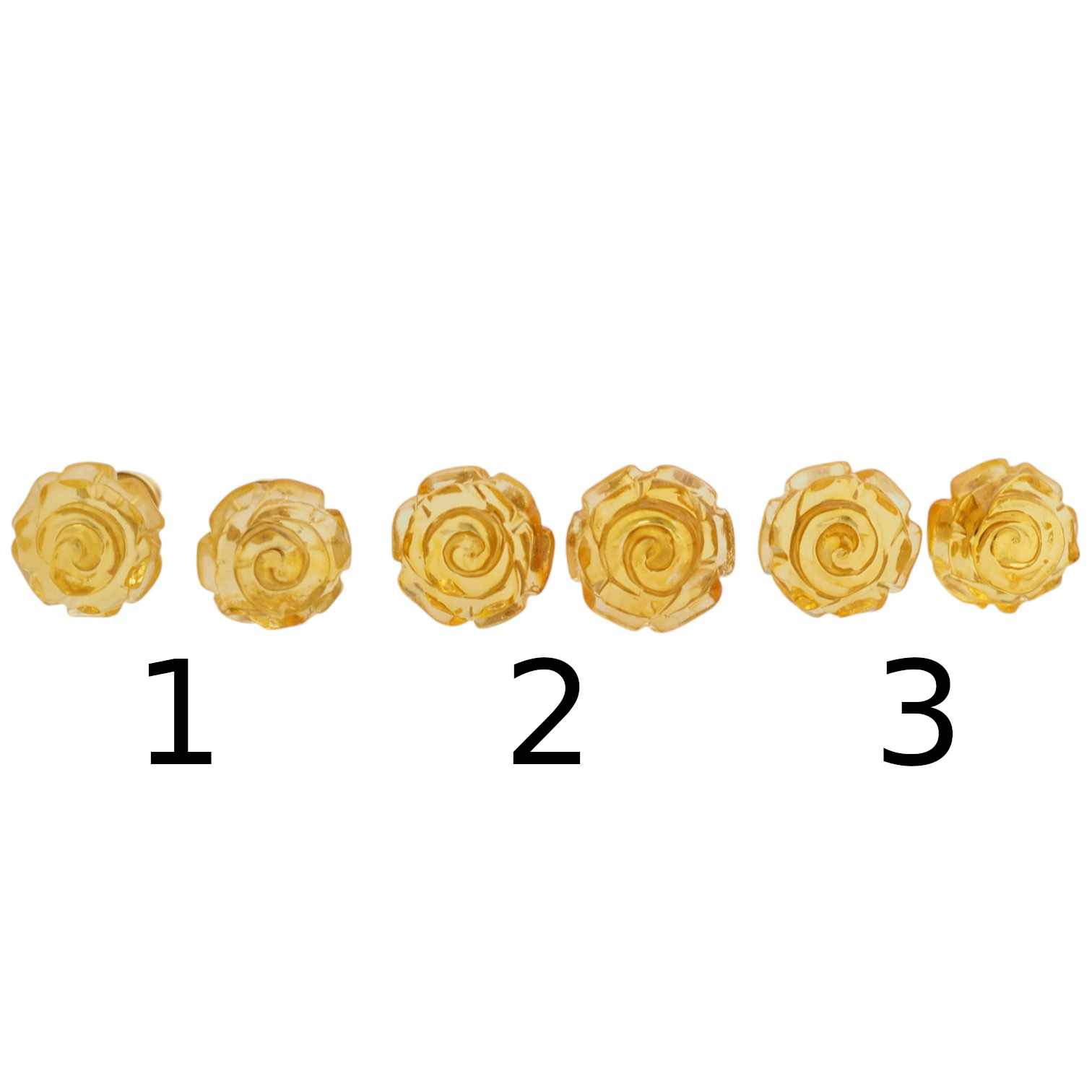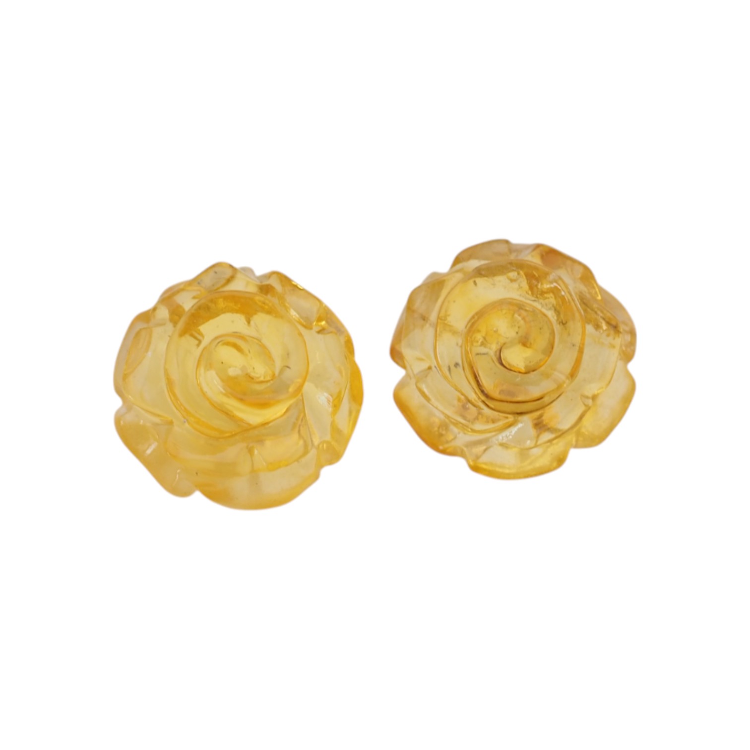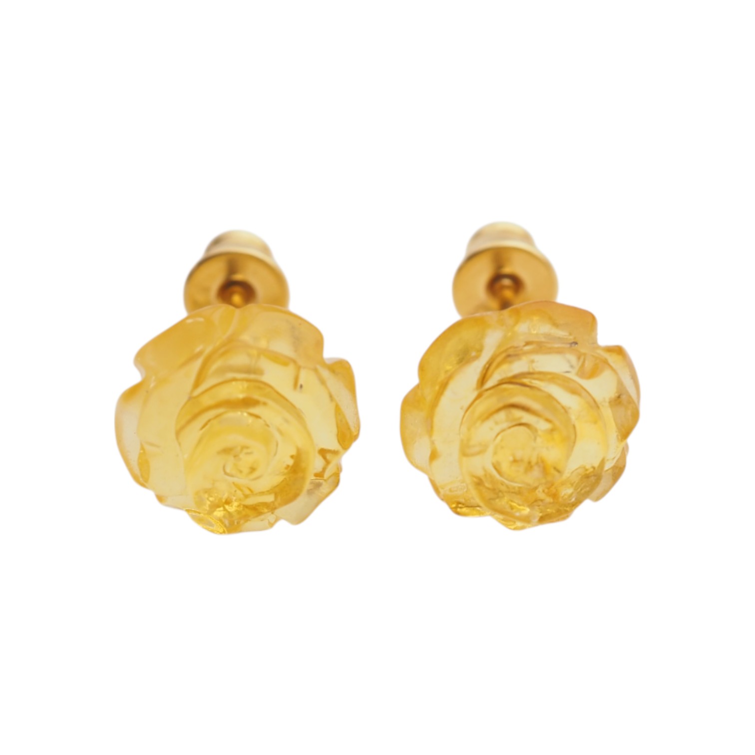 Kolczyki sztyfty rzeźbione z Bursztynu miodowego w kształcie kwiatków.