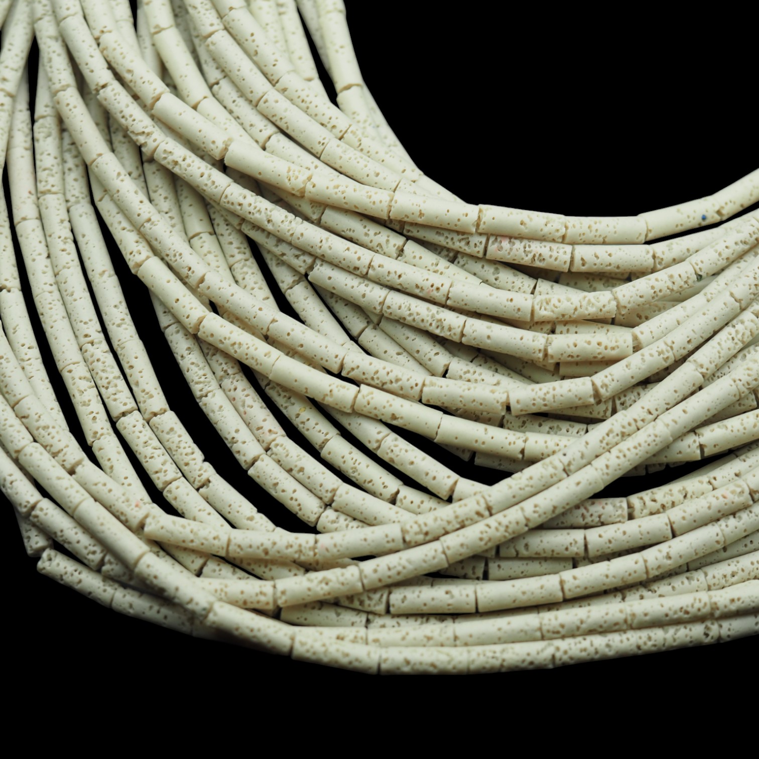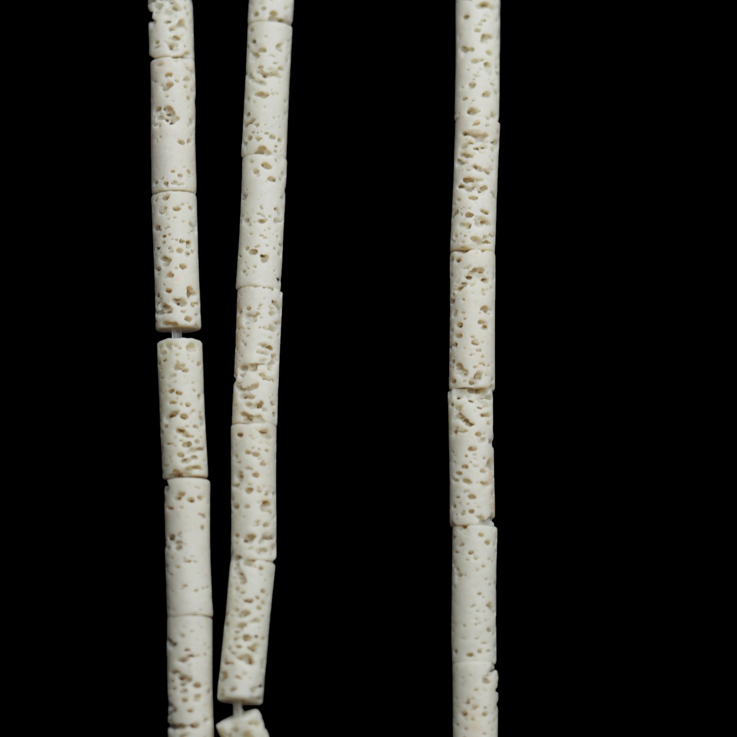 Naturalna lawa wulkaniczna w formie polerowanej rurki w białym kolorze to element o spokojnym, neutralnym charakterze. Prosty kształt i gładkie wykończenie dobrze wpisują się w nowoczesne kompozycje, a jasna barwa ułatwia łączenie z metalami i innymi kamieniami.