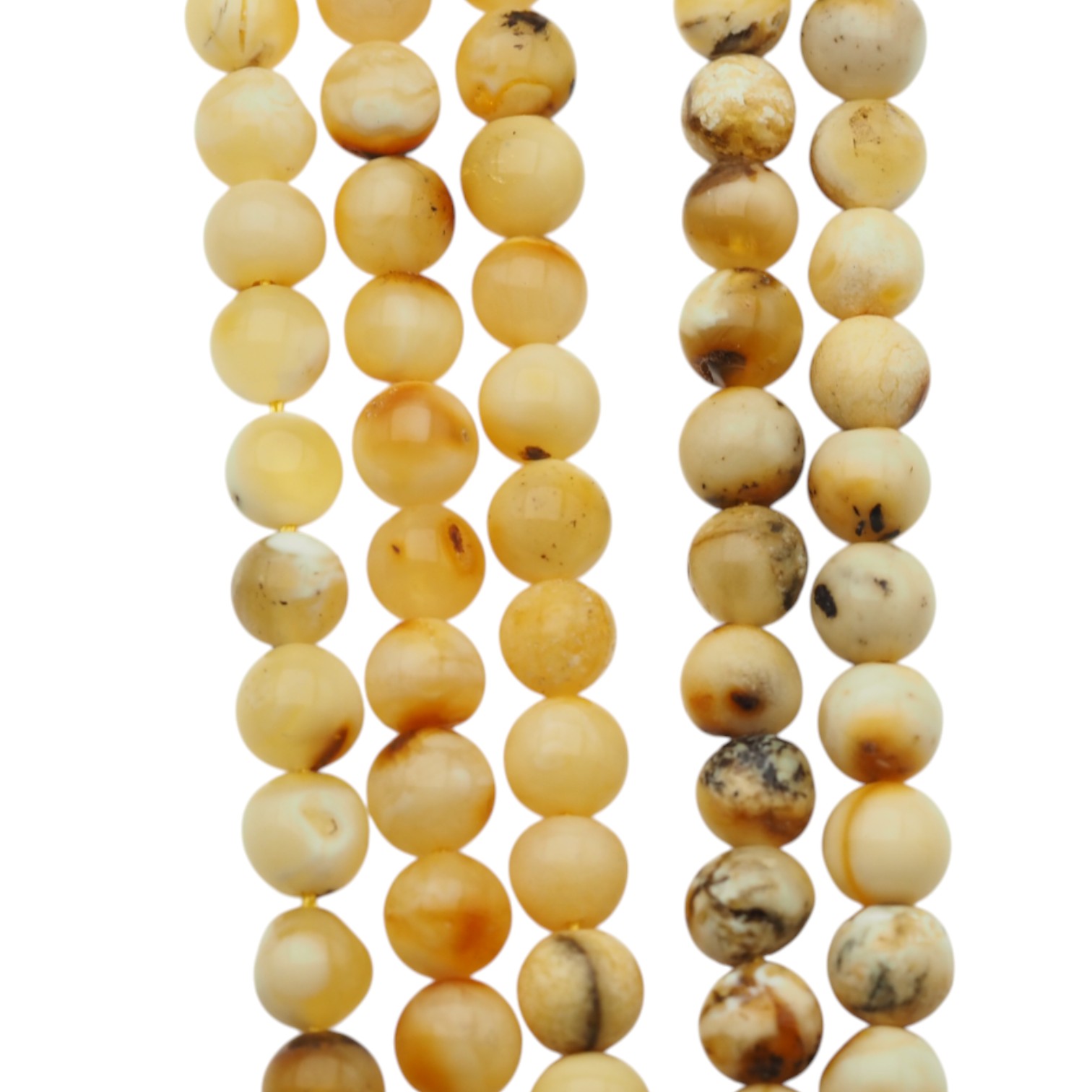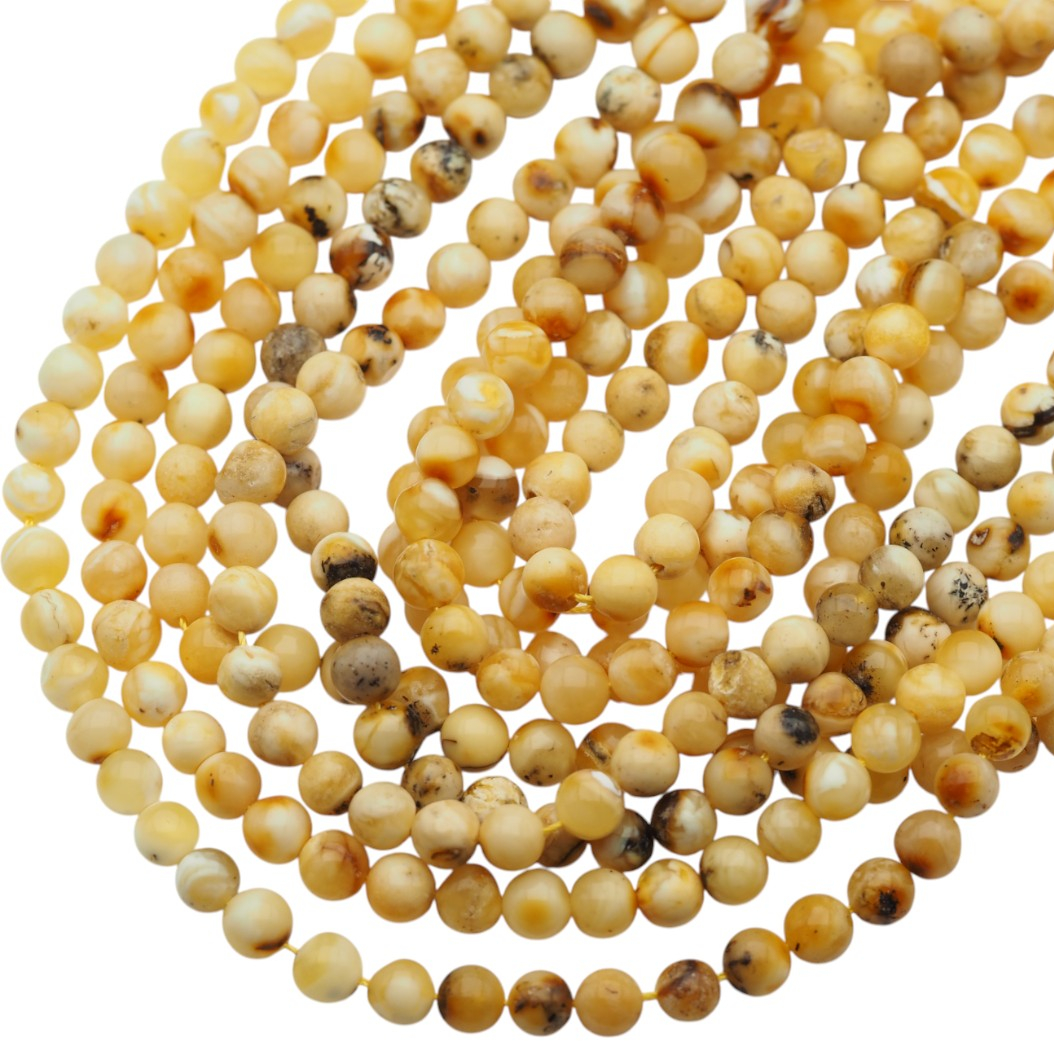 Naturalny bursztyn w formie polerowanych kulek to klasyka w projektach jubilerskich: gładka powierzchnia i miękki połysk podkreślają organiczny charakter kamienia. Kulisty kształt daje równe, estetyczne ułożenie na sznurze.