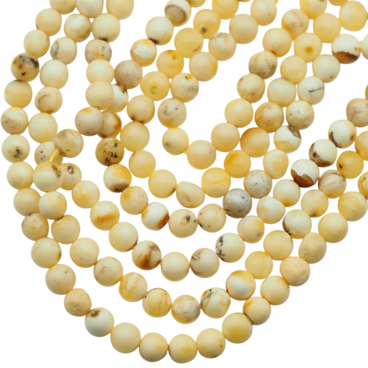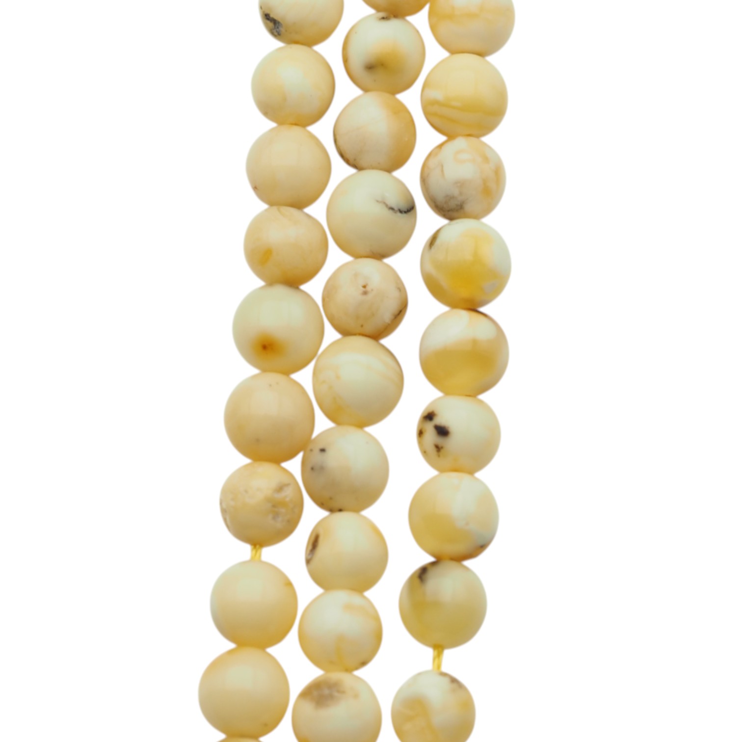 Kulki na sznurze sprawdzą się w naszyjnikach i bransoletkach, a także w projektach warstwowych i kompozycjach z przekładkami ze srebra lub stali. Biały bursztyn dobrze łączy się z beżami i miodem, ale też z kontrastami (czerń, granat), więc pasuje do wielu estetyk.
