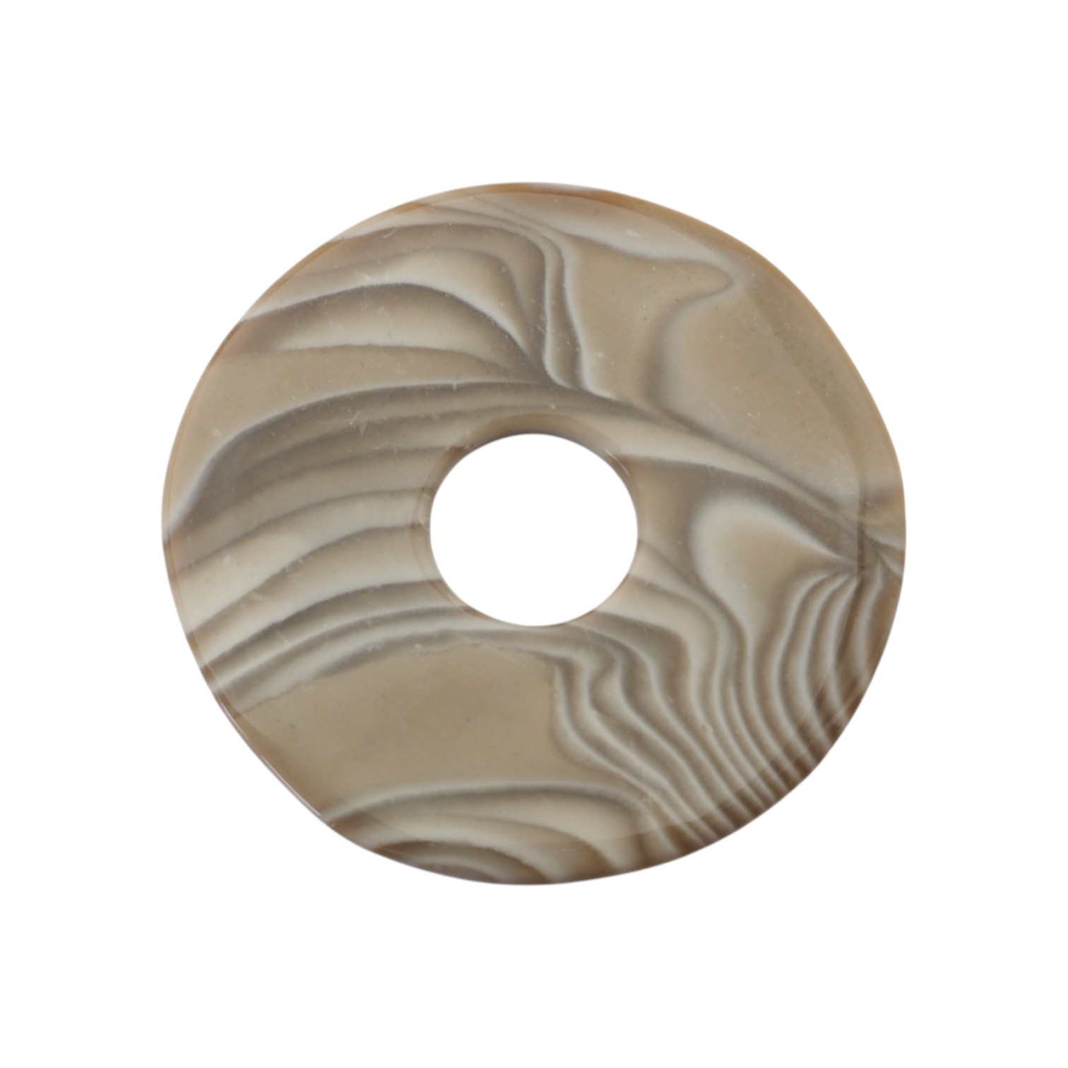 Naturalny krzemień pasiasty w formie donuta (donat) to efektowny element o charakterystycznym, warstwowym rysunku. Pasiasta struktura sprawia, że kamień wygląda dekoracyjnie i „jubilersko” nawet w prostej oprawie.