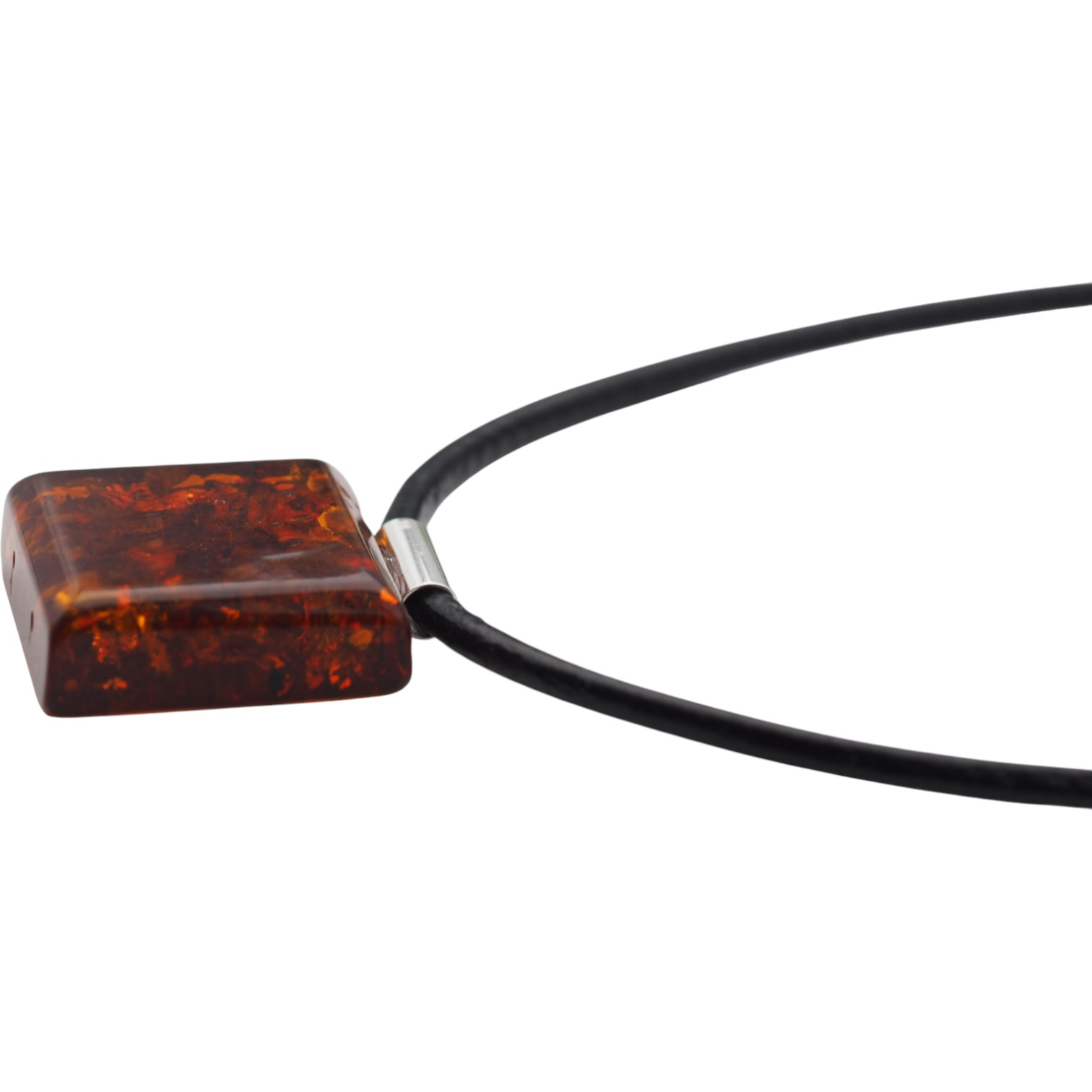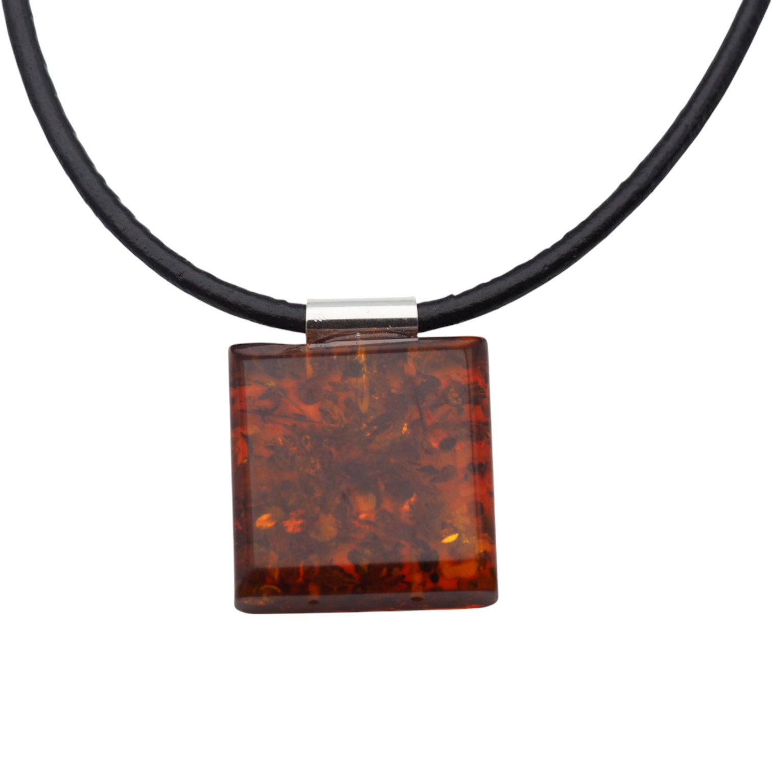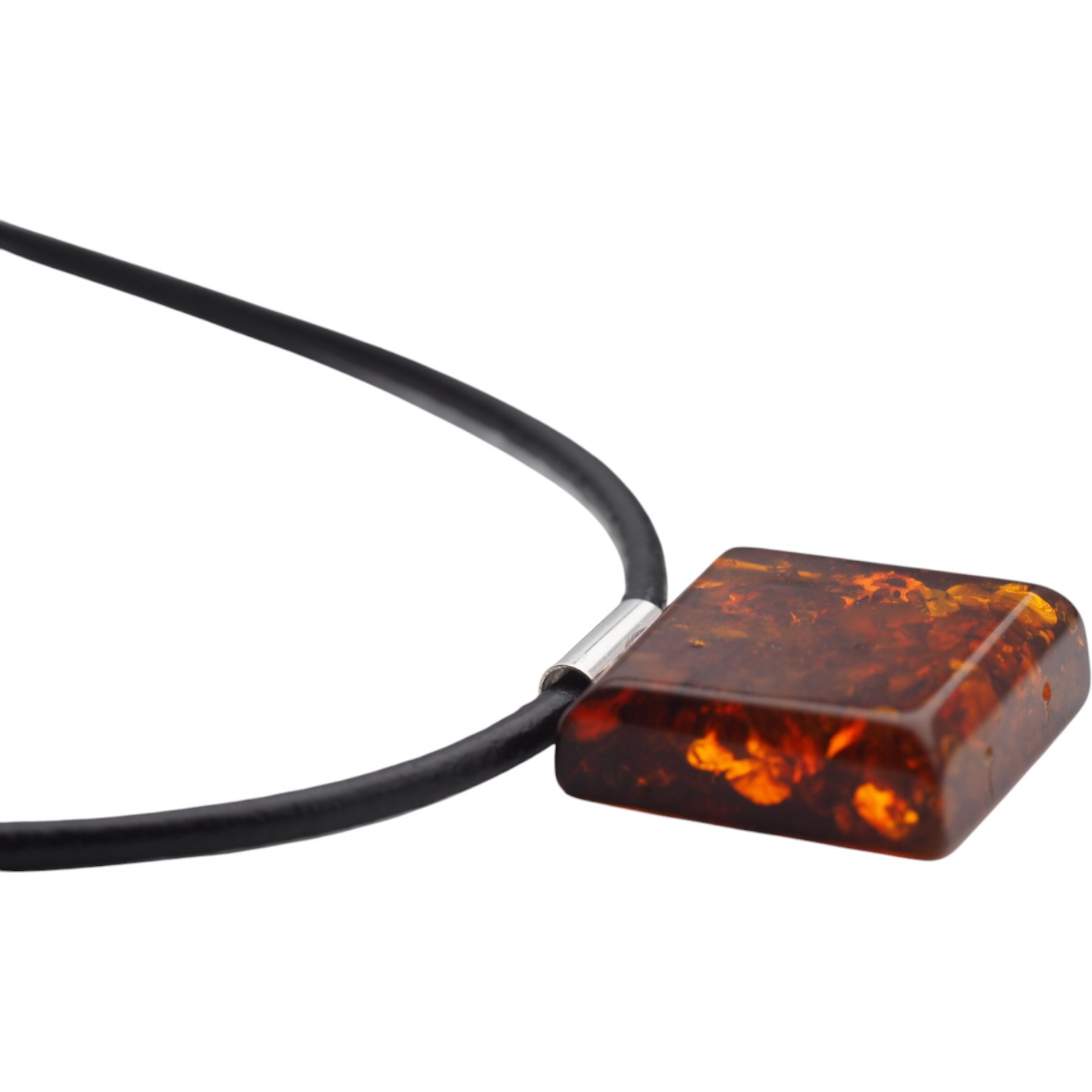 Koniakowy Bursztyn kwadratowy z łuskami i srebro - naszyjnik na rzemieniu