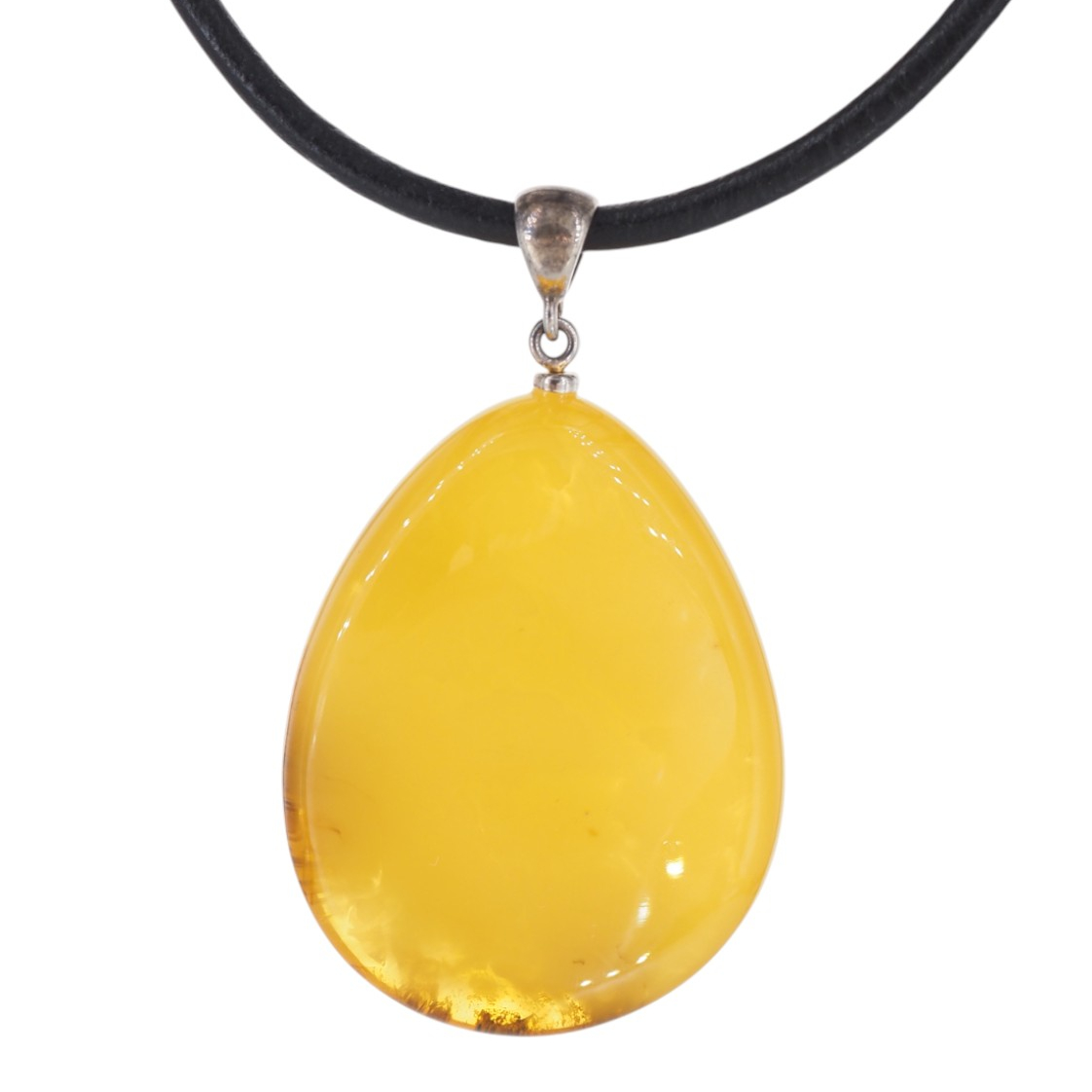 Ta ręcznie wykonana zawieszka przyciąga wzrok mlecznym bursztynem bałtyckim w kształcie kropli. Kamień jest polerowany i częściowo transparentny, w głębokim miodowo‑mlecznym odcieniu, który w świetle przechodzi w jaśniejszy żółty i delikatnie złocisty ton. Oprawa z oksydowanego srebra próby 925 podkreśla naturalny charakter bursztynu i nadaje całości szlachetny, lekko vintage’owy rys.