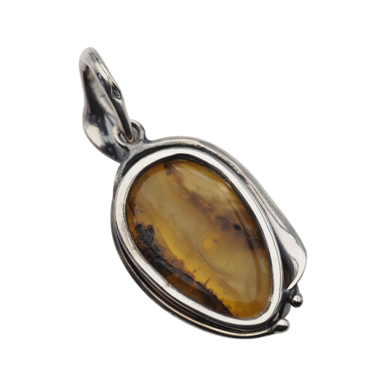 Zawieszka z naturalnym bursztynem bałtyckim przyciąga uwagę ciepłym, jasnożółtym (miodowym) kolorem oraz częściową transparentnością. W kamieniu widoczne są organiczne inkluzje – delikatne, naturalne ślady, które nadają biżuterii charakter unikatowego „zapisu” natury.