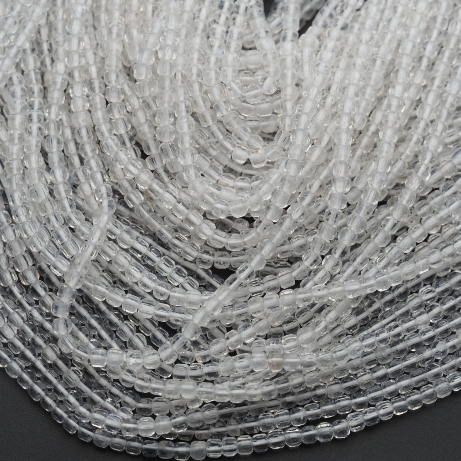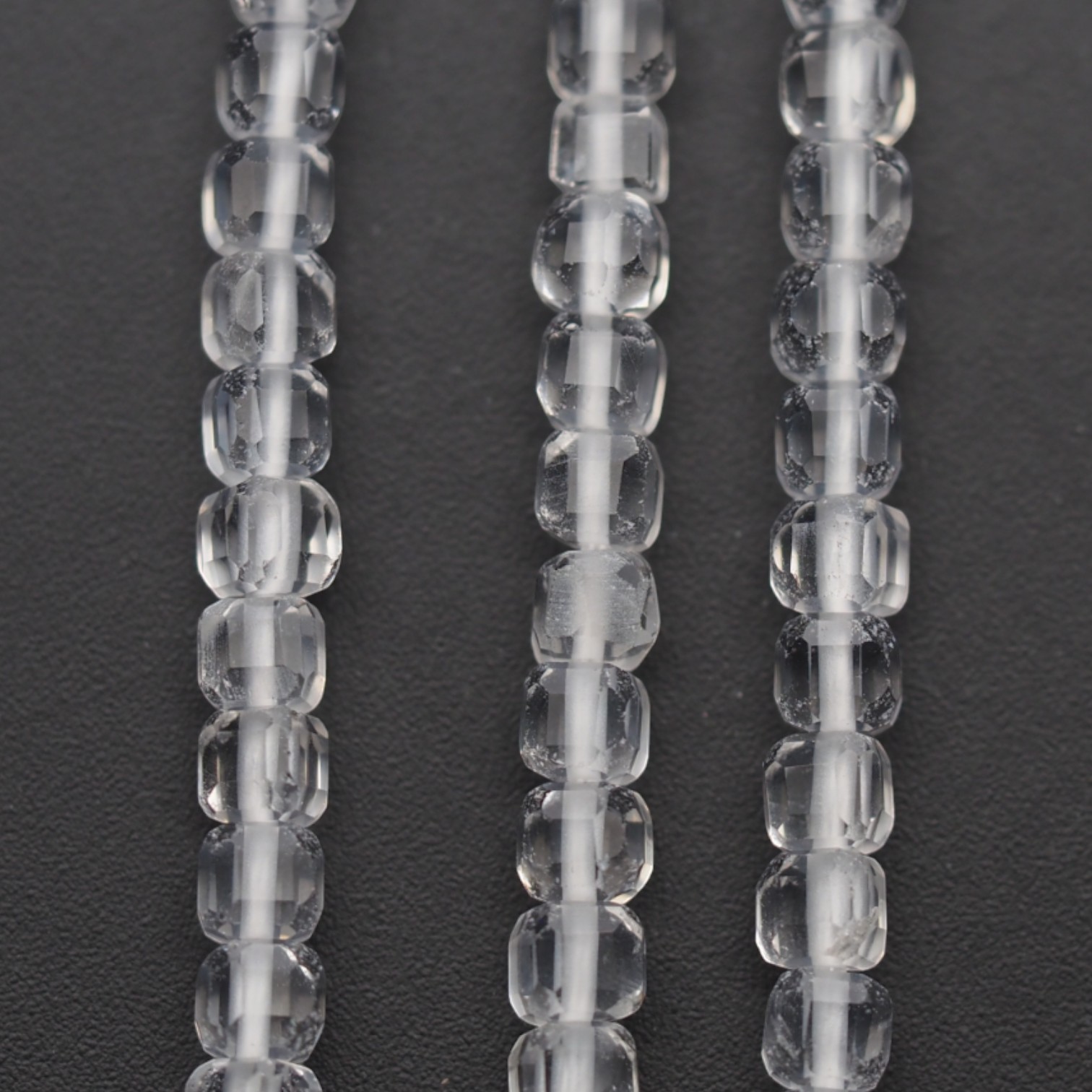 Kryształ górski naturalny w formie fasetowanych kostek to przejrzysty, elegancki kamień o klasycznym, jubilerskim połysku. Fasetowanie podkreśla światło i nadaje projektom czysty, minimalistyczny charakter.