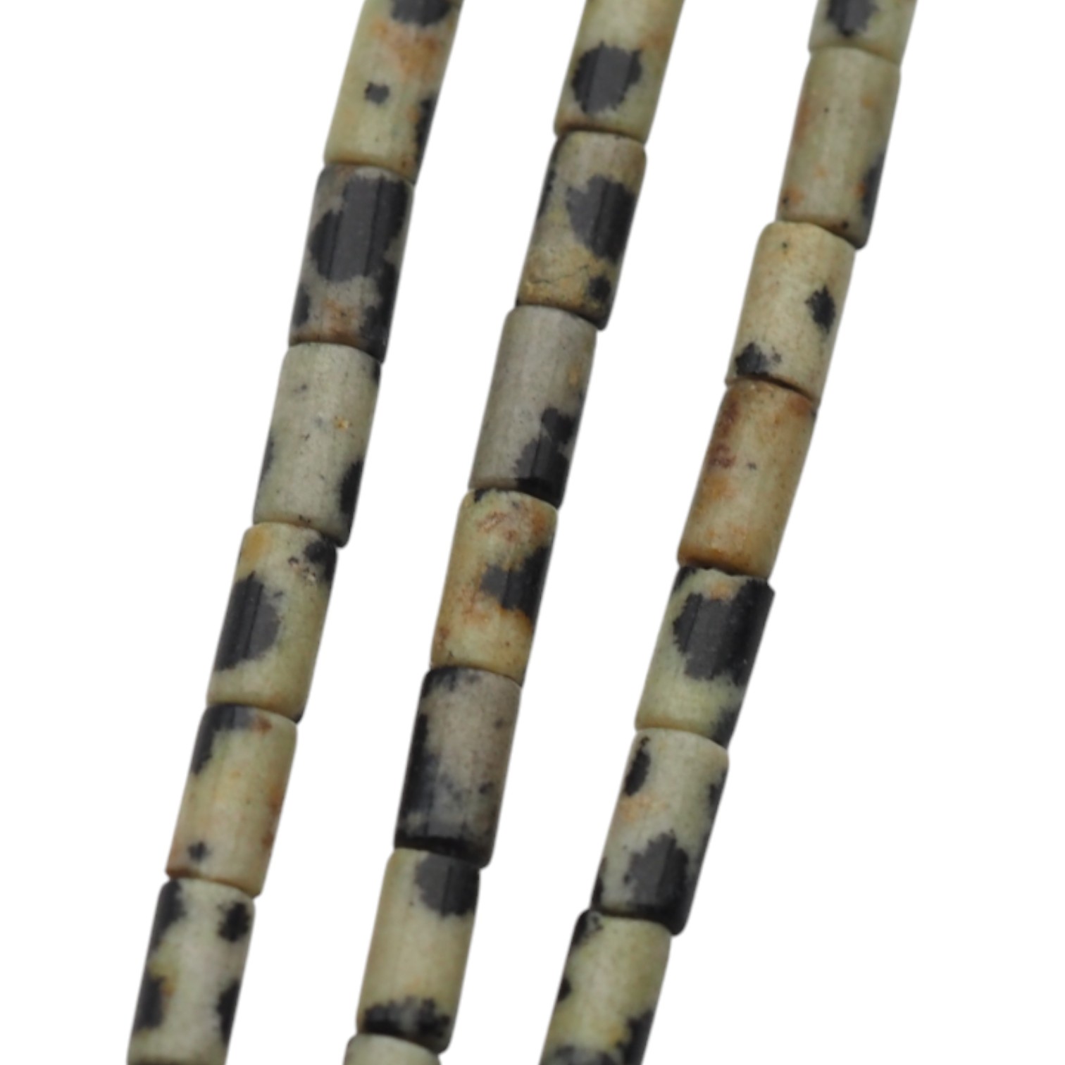 Jaspis dalmatyński w formie polerowanej rurki to jasny kamień z charakterystycznymi, ciemnymi nakrapianiami. Naturalny rysunek sprawia, że każdy element ma indywidualny wygląd.