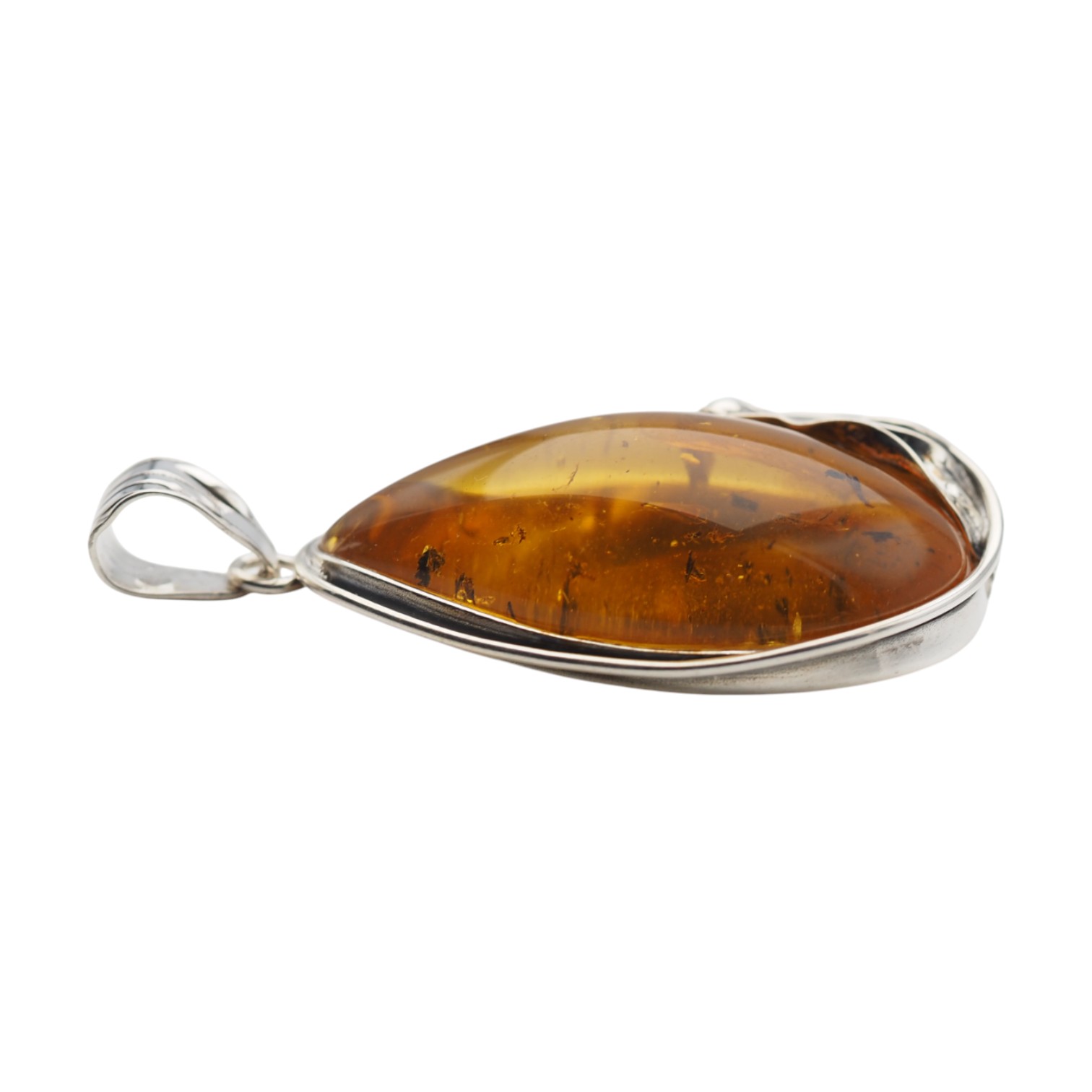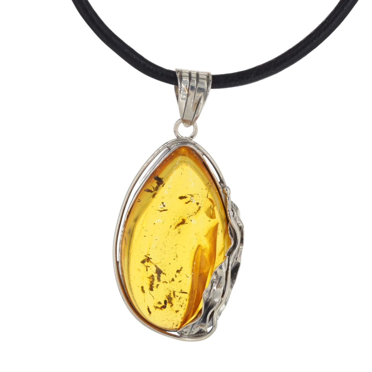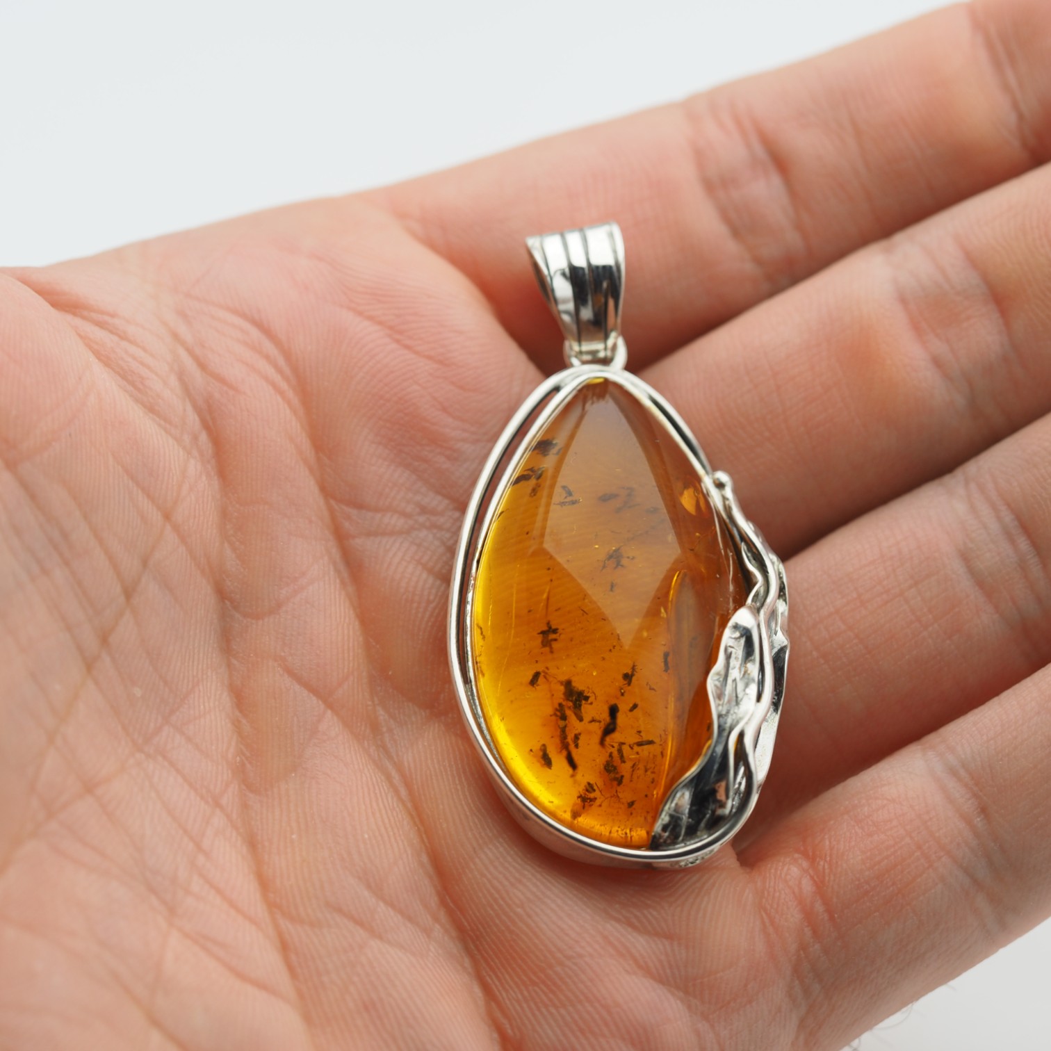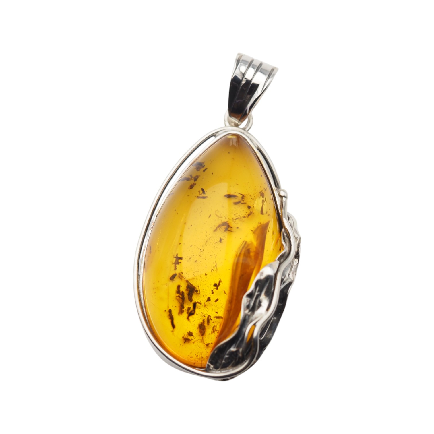 Wyjątkowa zawieszka z naturalnym bursztynem bałtyckim, oprawionym ręcznie w oksydowane srebro próby 925.