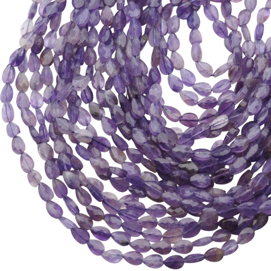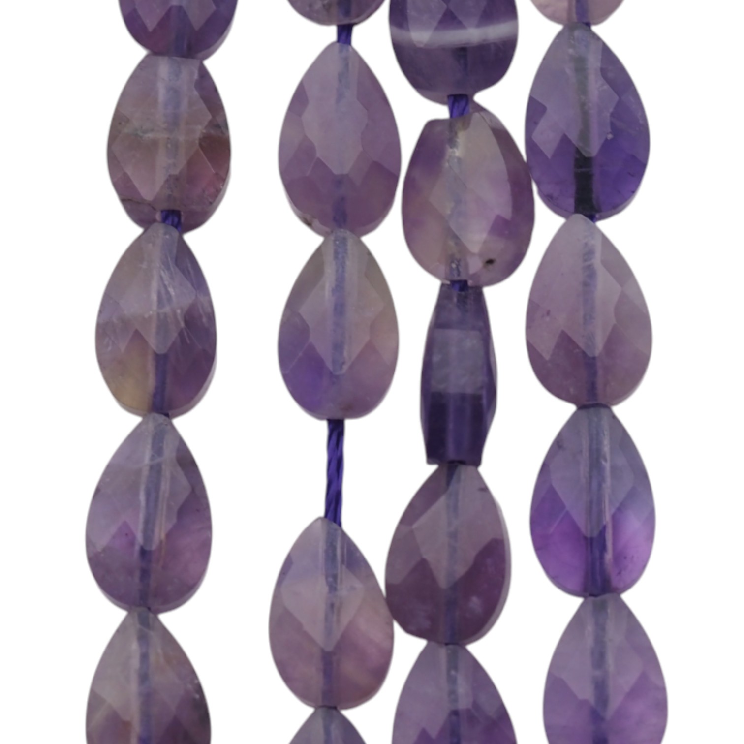 Naturalny ametyst w formie fasetowanych łez to klasyczny, elegancki półfabrykat jubilerski. Szlif podbija grę światła i podkreśla głębię fioletowych tonów.