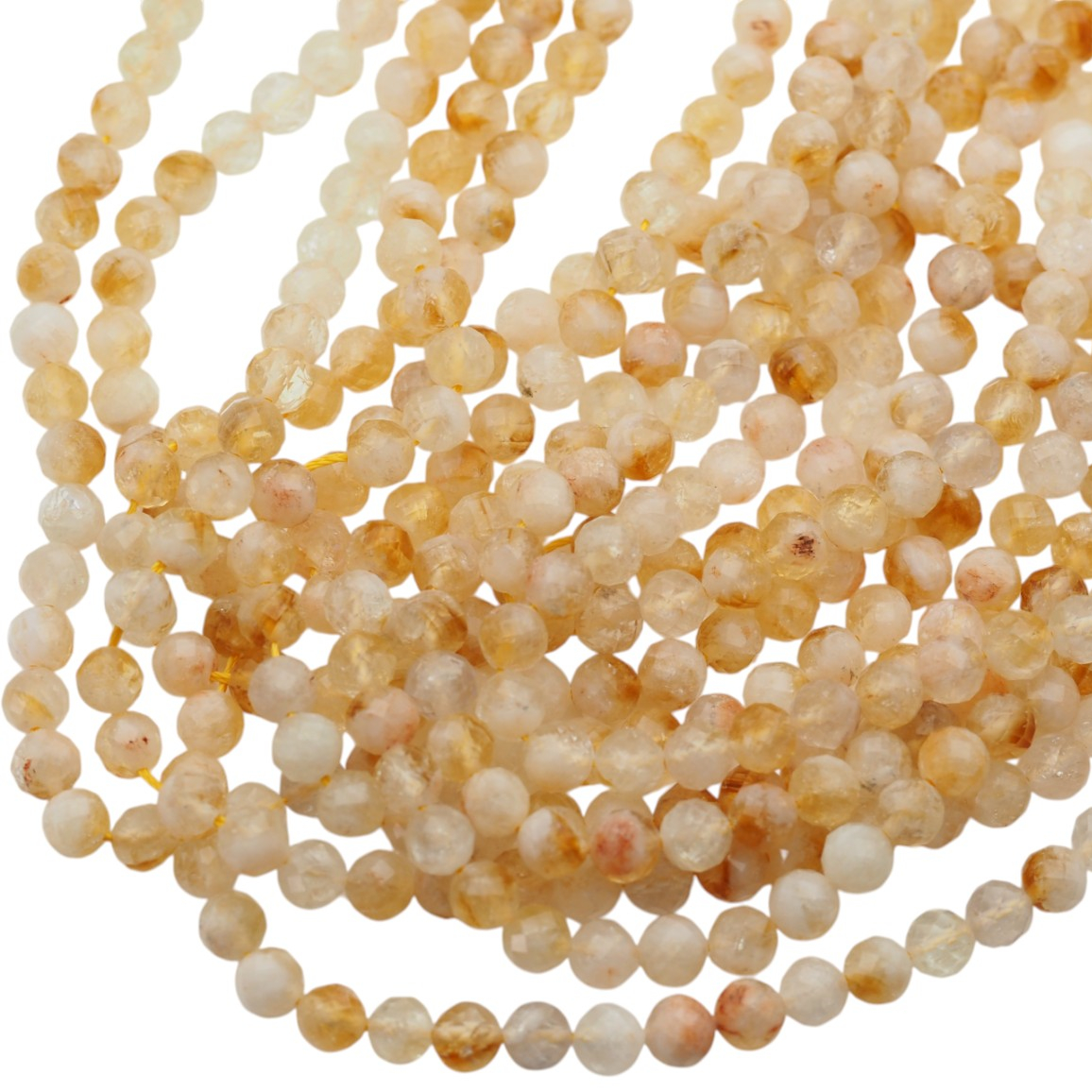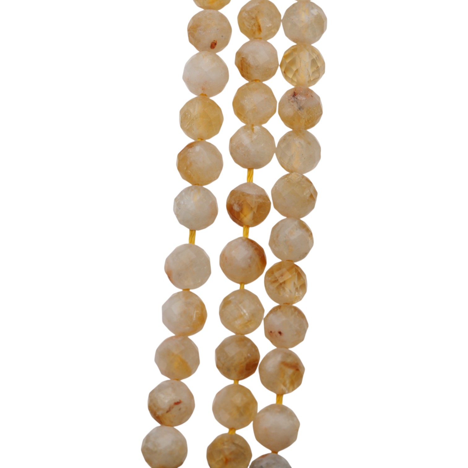 Naturalny cytryn fasetowany w formie kulek to klasyczny półfabrykat jubilerski o subtelnym, słonecznym połysku. Fasetowanie podbija światło na powierzchni kamieni, nadając sznurowi lekki, elegancki charakter.