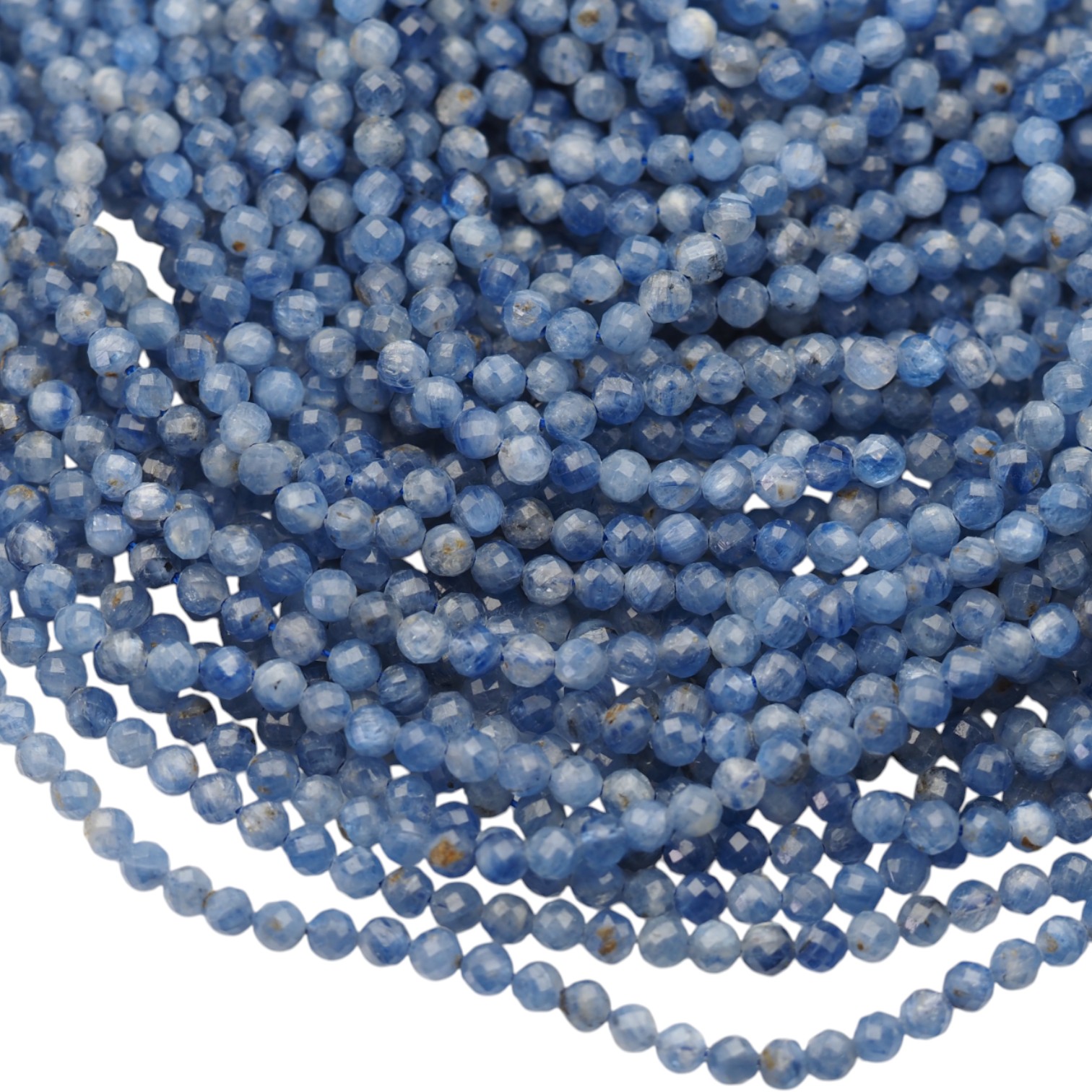 Naturalny kyanit fasetowany w formie kulki to drobne, szlifowane koraliki, które przyciągają uwagę subtelnym blaskiem faset. Dzięki regularnemu kształtowi tworzą na sznurze równy, estetyczny rytm i elegancko układają się w gotowych projektach.