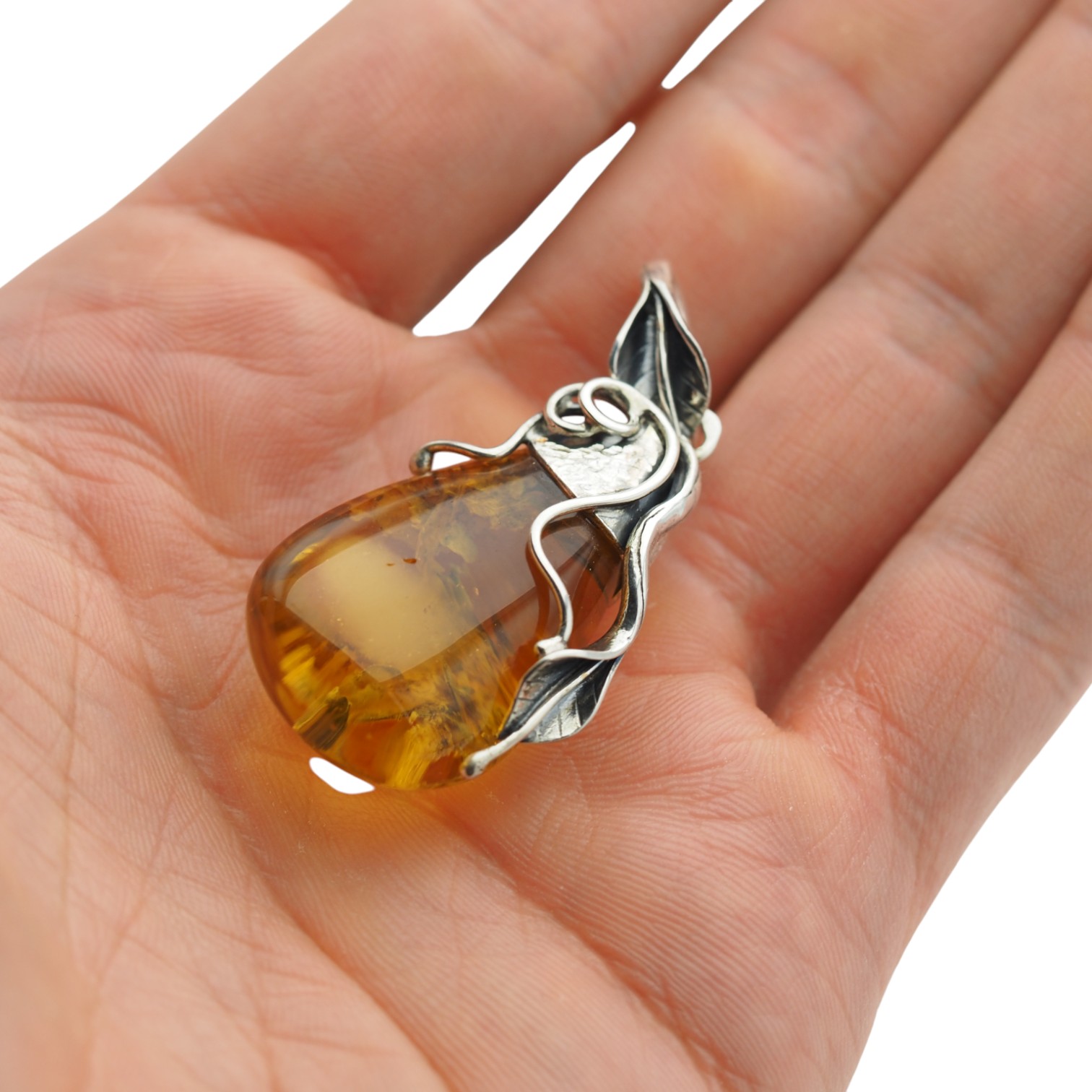 - naturalny bursztyn z widocznymi wtrąceniami: każdy egzemplarz ma unikatowy rysunek